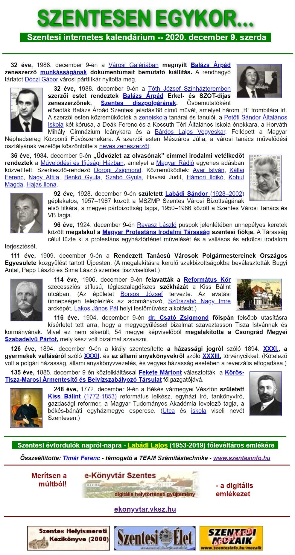 A nap és a hónap más évfordulói Labádi Lajos (1953-2019) munkái nyomán – http://www.szentesinfo.hu/mozaik/2020/calendar/evfordulonaptar-12.htm#09