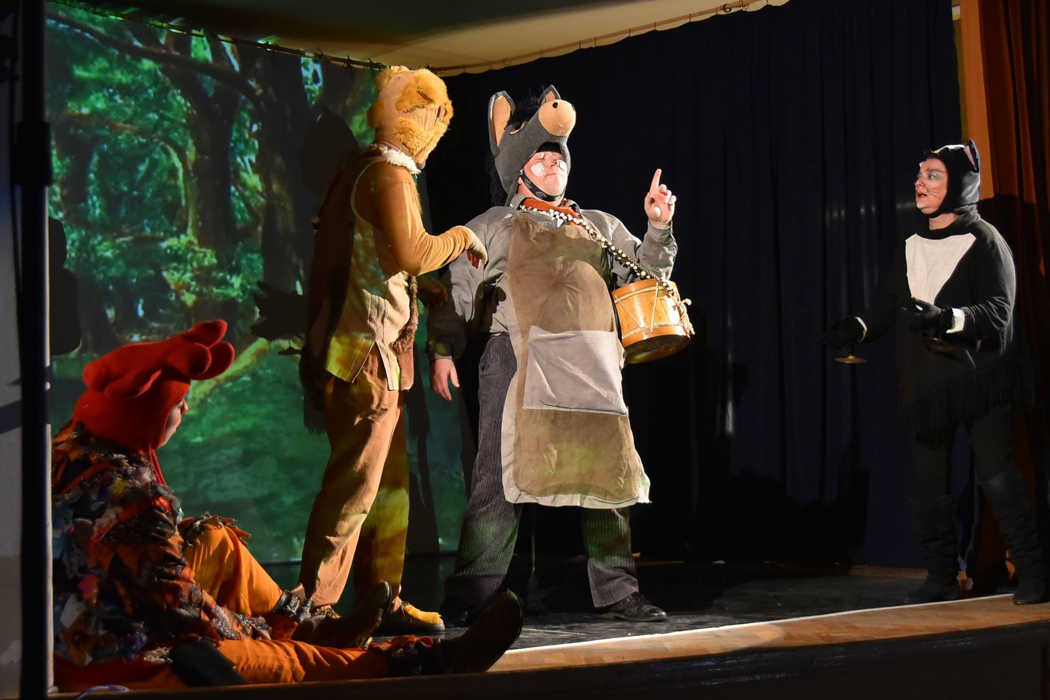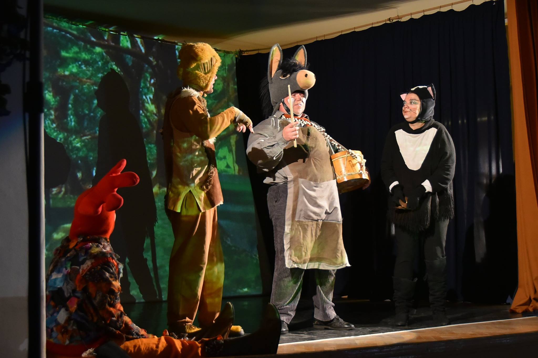 előadásaként a Móricz Zsigmond Művelődési Házban. Látványos megoldással (háttérvetítéssel) tették még vonzóbbá a színpadi produkciót, így a több helyszínes mese látványos átvezetőket tartalmazott.Szerintünk nincs olyan kisgyermek aki ne hallotta volna már a Grimm testvére meséjét, ahol örök és igaz barátságot kötött négy állat. Mindegyikőjük a saját bőrén tapasztalja meg az emberi kegyetlenséget – és kiszolgáltatottságot.