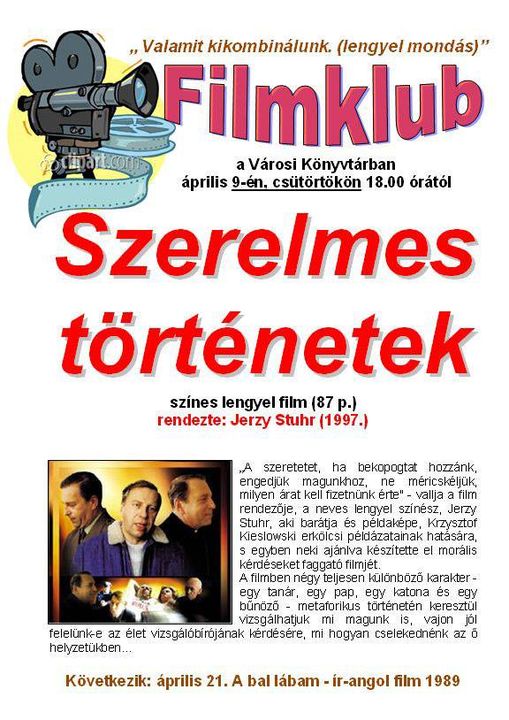 Nem kedden, hanem csütörtökön lesz a következő könyvtári filmklub, melyen a Szerelmes történetek című lengyel filmet tekinthetik meg az érdeklődők!