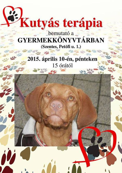 2015. április 10-én, pénteken 15.00 órakor kutyás terápiás bemutató lesz a gyermekkönyvtárban. Minden érdeklődőt várnak erre az állati jó programra!