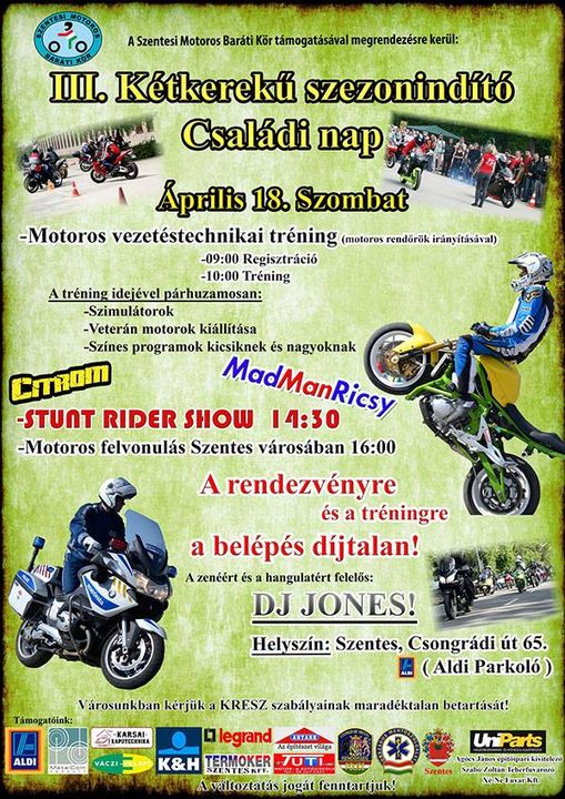 2015. április 18-án a Szentesi Motoros Baráti Kör szervezésében immáron harmad ízben kerül megrendezésre a Kétkerekű Szezonindító Családi Nap.