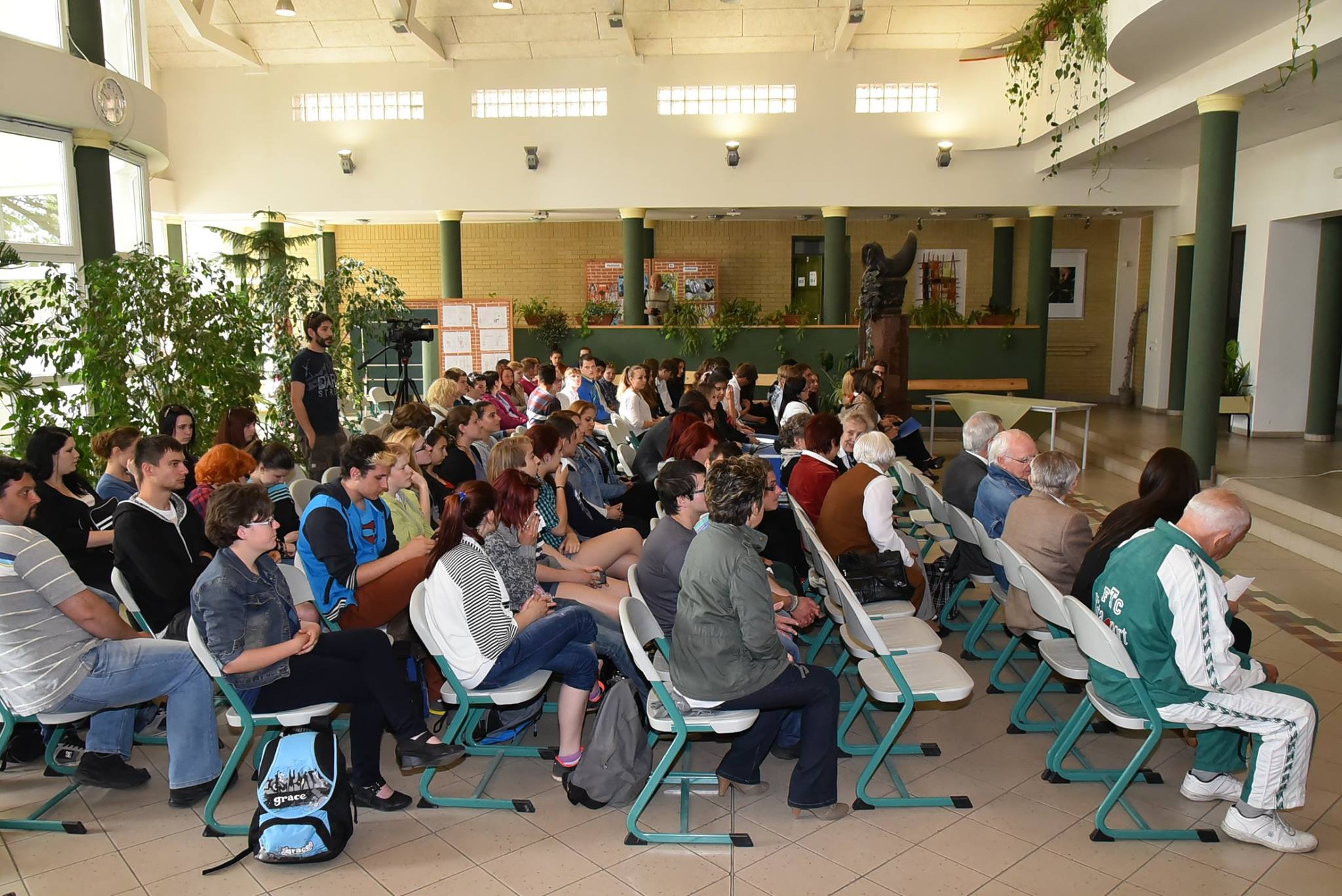 Az alpolgármesteri gondolatok után Petri Dorottya (9.a) és Luczó Tímea (11.a) osztályos tanulók előadásában szemelvényeket hallhattunk Valachi Anna: Egy színjátékos élete című könyvből.