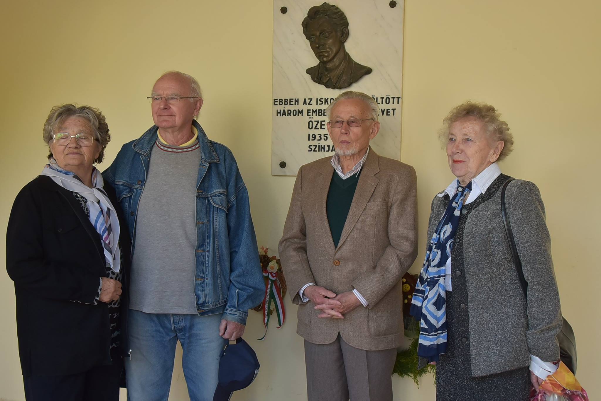 Végezetül az iskola főbejárata mellett található emléktáblát koszorúzták meg a részvevők, így az iskola nevében Udvardi István igazgató a város nevében dr. Demeter Attila helyezte el az emlékezés koszorúit. Őze Lajos egykori osztálytársai is virágokkal emlékeztek a „színjátékosra”.