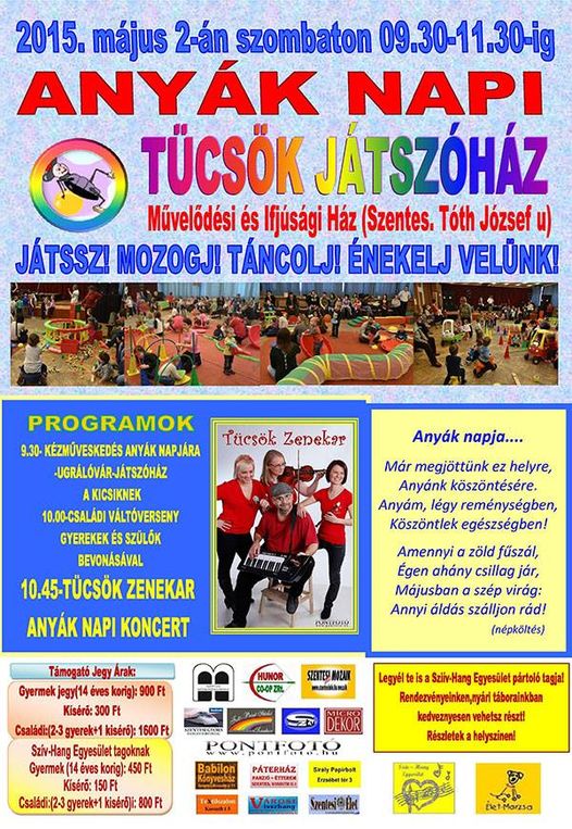 Anyák Napi Tücsök Játszóház 2015. május 2-án Szentesen az Ifjúsági Házban!!!