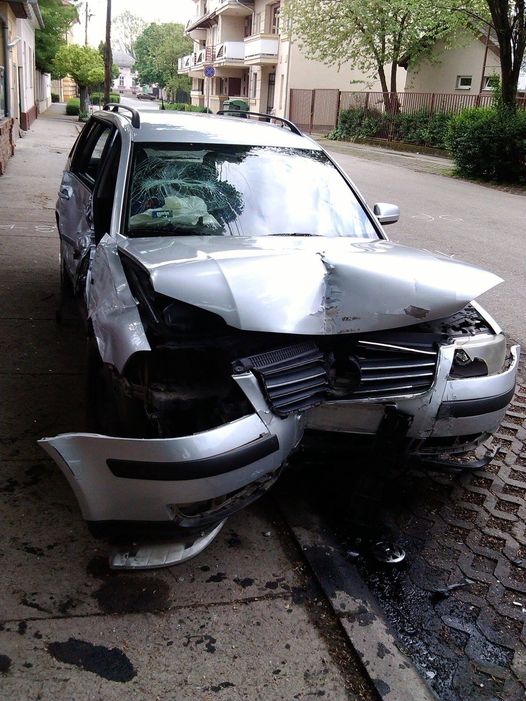 A Munkácsy utcában szombat éjjel haladó szürke VW először egy betongyámmal találkozott, majd nekiütközött a Filep-ház előtti iker villanyoszlopnak. Ugyan egy szemtanú az mondta, hogy az autó utasa szinte sértetlenül szállt ki a rommá tört járműből, közben kiderült, hogy a kórház baleseti osztályán kellett töltenie az anyák napi hétvégét.