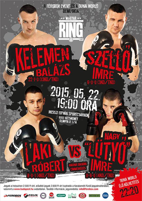 A Ferobox Event május 22-én, Kecskeméten rendezi következő élő televíziós bokszgáláját, melynek programjában egy izgalmasnak ígérkező magyar-bajnoki címmérkőzés is helyet kapott.