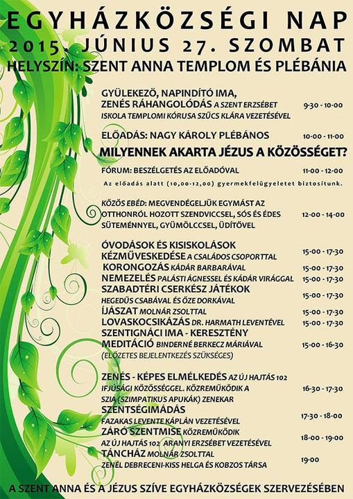 2015. június 27-én a szentesi Szent Anna Egyházközség minden érdeklődőt vár a Szent Anna templomba és a plébániára Egyházközségi családi napja alkalmából.
