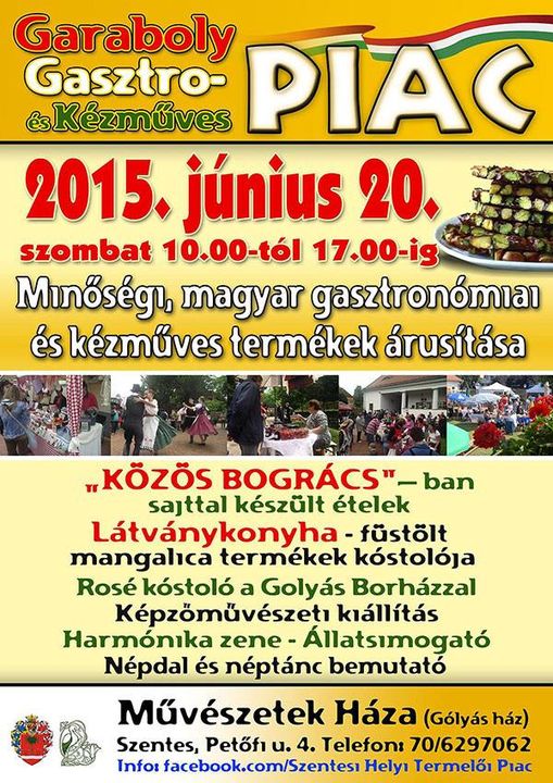 A sok-sok szombati programhoz íme egy újabb, melyre várnak minden piacrajongót! Szombaton újra Garaboly Gasztro- és Kézműves Piac a Művészetek Háza udvarán.