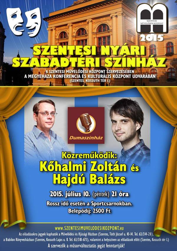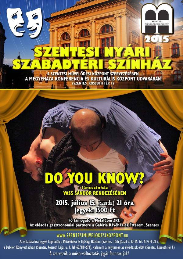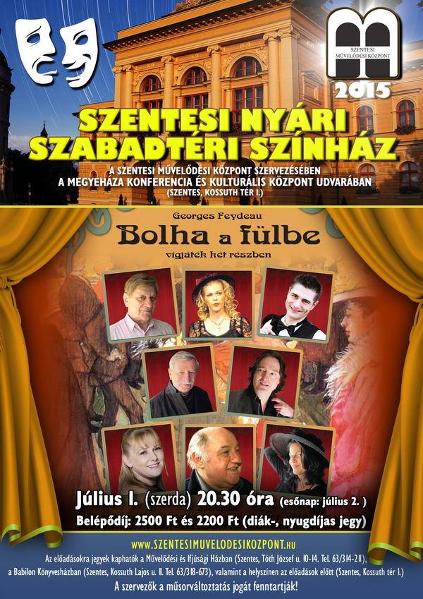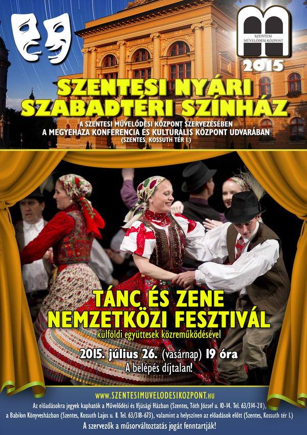 A Megyeháza festői udvarán júniustól augusztusig a komolyabb színházi előadásokat kedvelők éppúgy megtalálják számításaikat, mint a habkönnyű komédiák és a fordulatos operettek szerelmesei, de zenéből, táncból, kulturális expedíciókból sem lesz hiány: a népzenétől a vérbő rock and rollon át a lírai dalokig terjed a repertoár. A programsorozat kiváló művészek és fiatal tehetségek közreműködésével aranyozza be a szentesi nyári estéket.