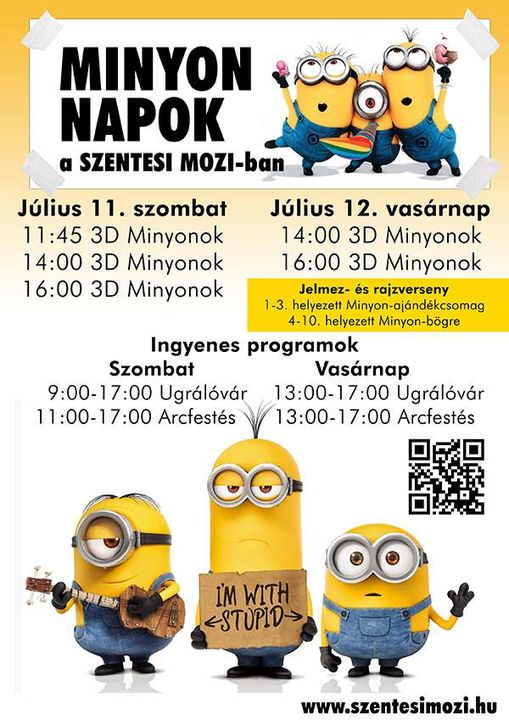 Ezen a hétvégén MINYON NAPOK-at tartanak a Szentesi Moziban! Az új családi mozifilm mellett ugrálóvár és egyéb ingyenes programok várják a gyermekeket a SZENTESI MOZI-nál. További részletek a plakáton!