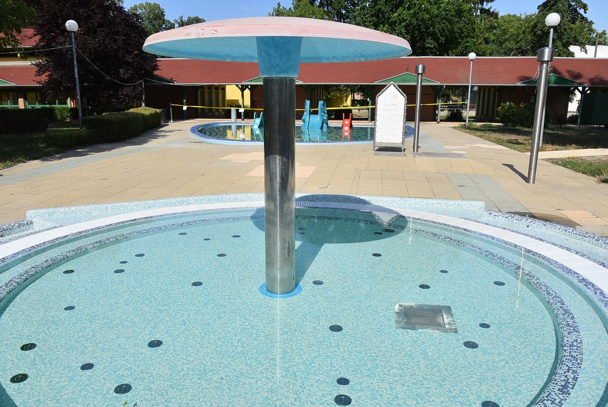 Igény merült fel a vendégek között, hogy több szabadtéri tusolót szívesen fogadnának, mert egy-egy frissítő tusolás üdítőbb a kánikulában és így a medencék higiéniáját a vendégek is jobban szolgálják. Ezért új szabadtéri tusolókomplexum kerül kialakításra a gyermek- és a termálmedence között.