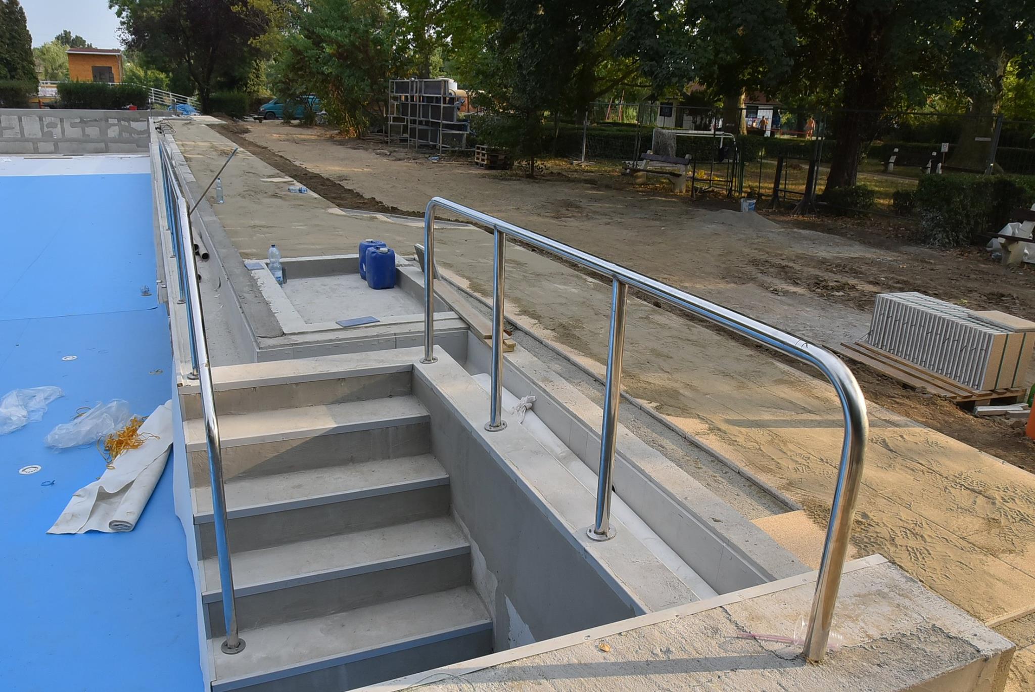 Talán a projekt leglátványosabb beruházása a régi 50 m-es medence felújítása. A hosszú előkészítő munka eredményeként nem csak küllemre, hanem gépészetileg is megújul ez a medence. Új töltő ürítő rendszer keringteti majd az „50-es” szabadtéri úszómedencében. A két hosszoldali medenceperem visszabontása után új, rozsdamentes acélból hajlított medenceperem készül ún. Wiesbaden-i feszítővályúval, így ennél a medencénél is feszített víztükör kerül kialakításra. A felújítás kiterjed arra is, hogy 2 rétegű vízszigetelést kap a medencehéj, az előlépcsők és a lábmosók újra lesznek csempézve, a medence minden oldala mentén új körüljáró készül 2 méter szélességben. Új, rozsdamentes acél csőszerelvényekből készülnek a kapaszkodók, korlátok, létrák és új ugrókövek lesznek elhelyezve a medencevégeken.