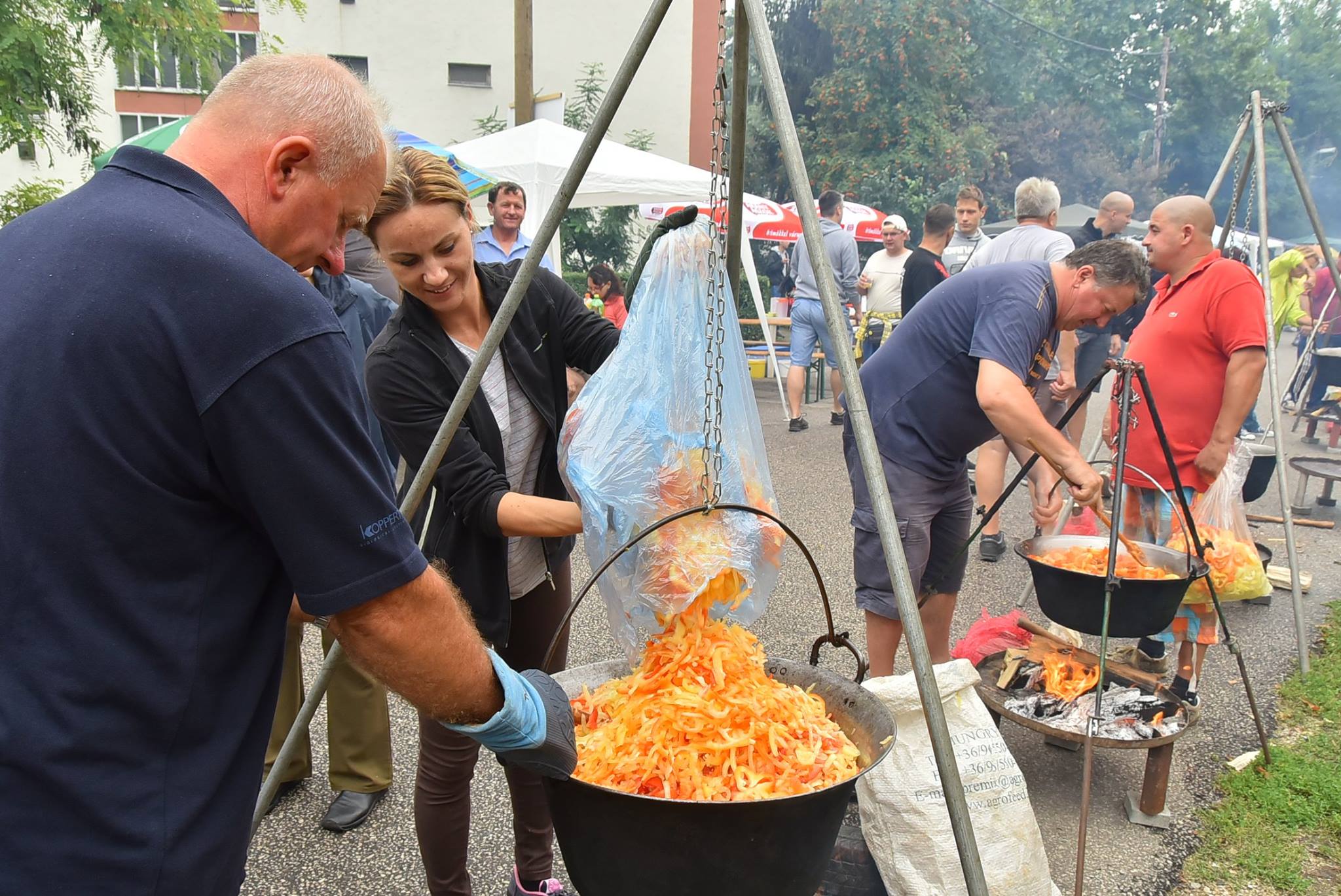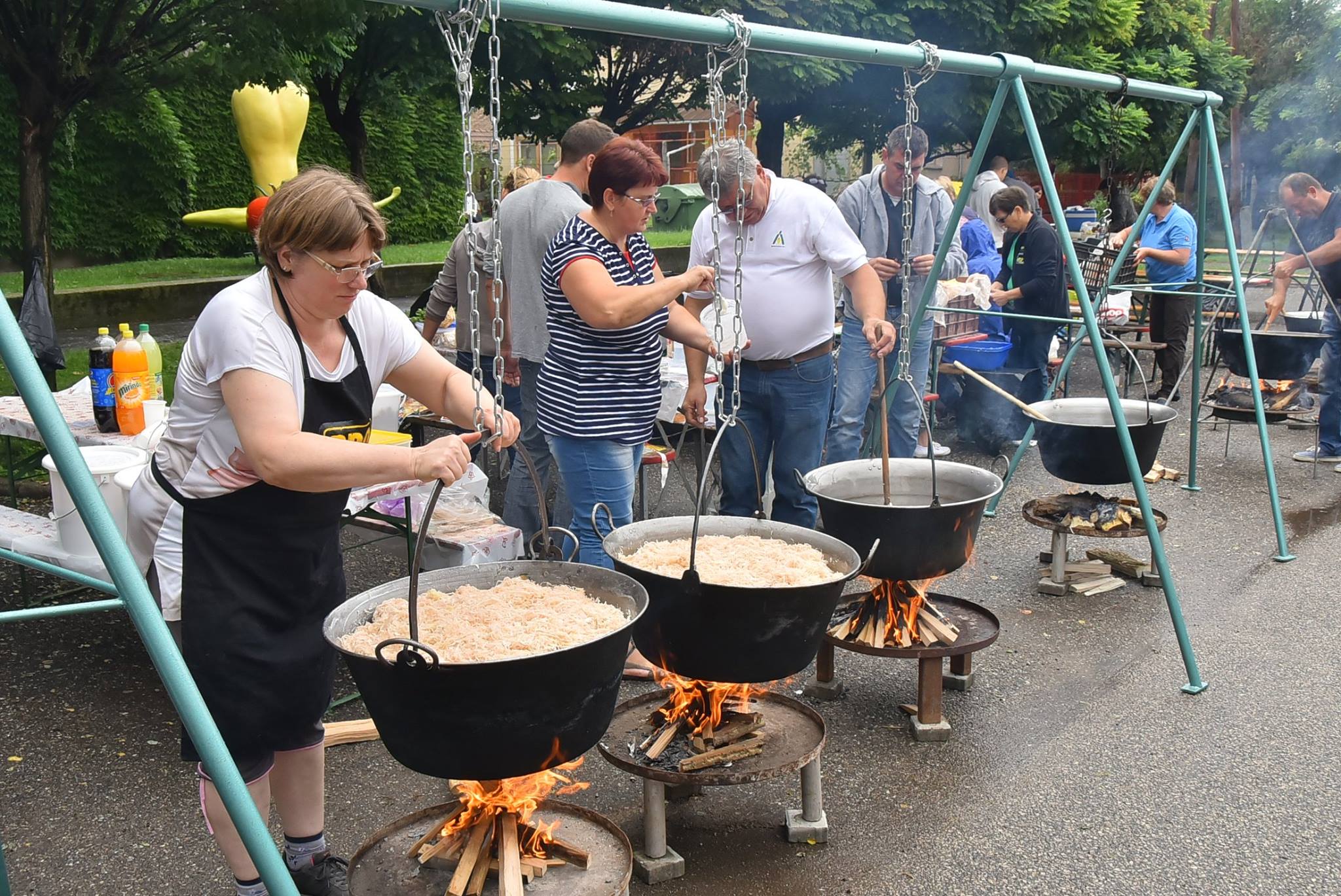 A füstölőből kiemelt kolbászok érezhetik úgy magukat, mint akik csak nézelődni (esetleg kóstolni ) jönnek, és körbejárják az asztaltársaságokat a Szentesi Lecsófesztiválon. Ők szemüket dörzsölve figyelik, hogyan bírják a rutinos sütők vagy lecsófőzők a maró füst alatt végezni a dolgukat. Aki jobban a körmükre néz, látja, sok csapatnál pálinkát használnak érzéstelítőnek, és mivel 290 tűzhely nem kevés, úgy fogy gyűszűjével a „papramorgó”, mint hajógyárban a szegecs. Valljuk be, hogy szabadban főzni nagyszerű élmény az egész családnak vagy baráti társaságnak. Körbeálljuk a tüzet, a levegőben füst és az étel illatának keveréke. Iszogatunk, beszélgetünk, és közben mindenki egyre éhesebb.