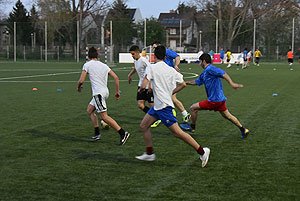 25×40 m a pályaméret, kézilabda kapuval, a pálya területe bójákkal kerül kijelölésre.