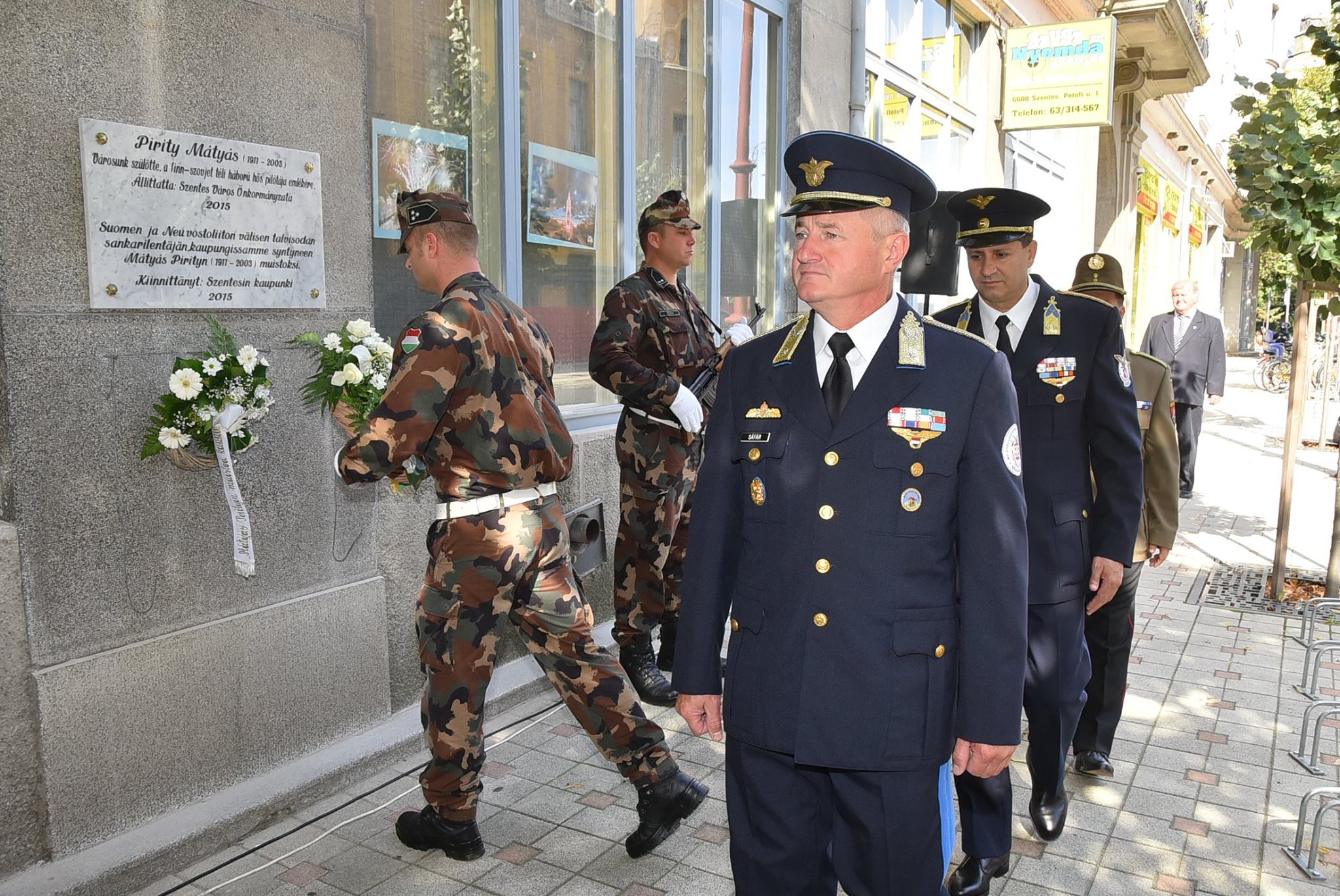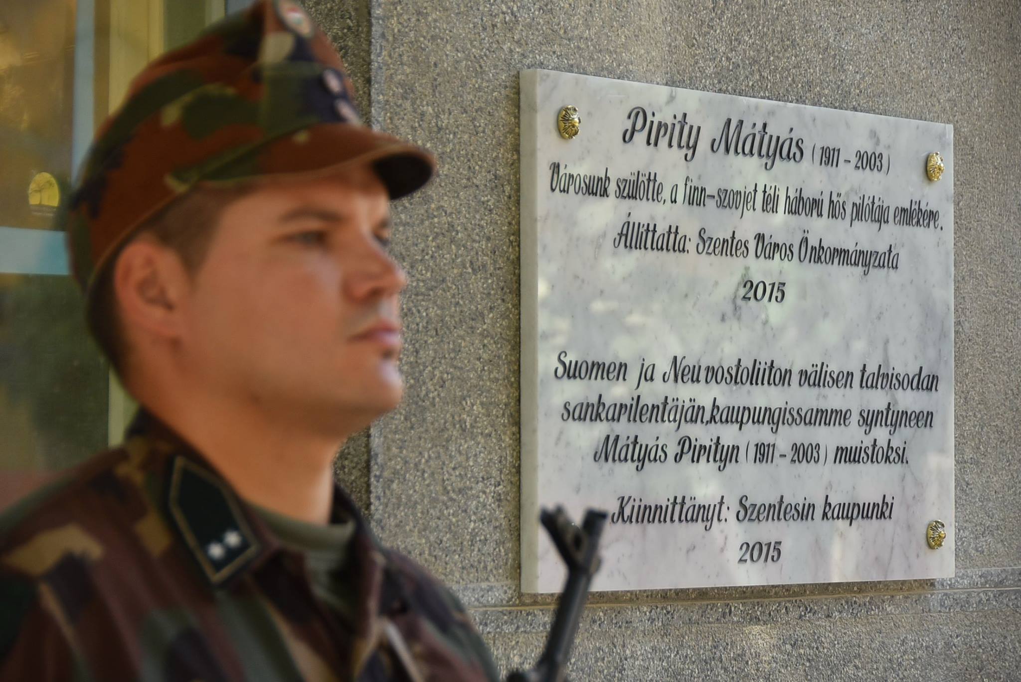 A honvédelmi minisztérium helyettes államtitkára nevében mondott avató beszédet Sáfár Albert dandártábornok. Az MH légierő haderőnem főnöke többek között beszélt arról, hogy Szentes Városa és a magyar repülés történetének első nagy találkozására 1911-én november 5-én, Felső-Csordajáráson került sor az első merevszárnyú repülőgép felszállásával. Ugyanezen év december megszületett a Pirity család legifjabb sarja, Mátyás, aki a mai napig nagy tiszteletnek örvend Finnországban, hiszen egyike volt azoknak, akik a Szovjetunió elleni harcokban önkéntesként ténylegesen szolgáltak az oldalukon. A hadnagy 1940 február 15. és a háború vége, március 13. között 22 alkalommal szállt fel és megrongált egy szovjet bombázót.