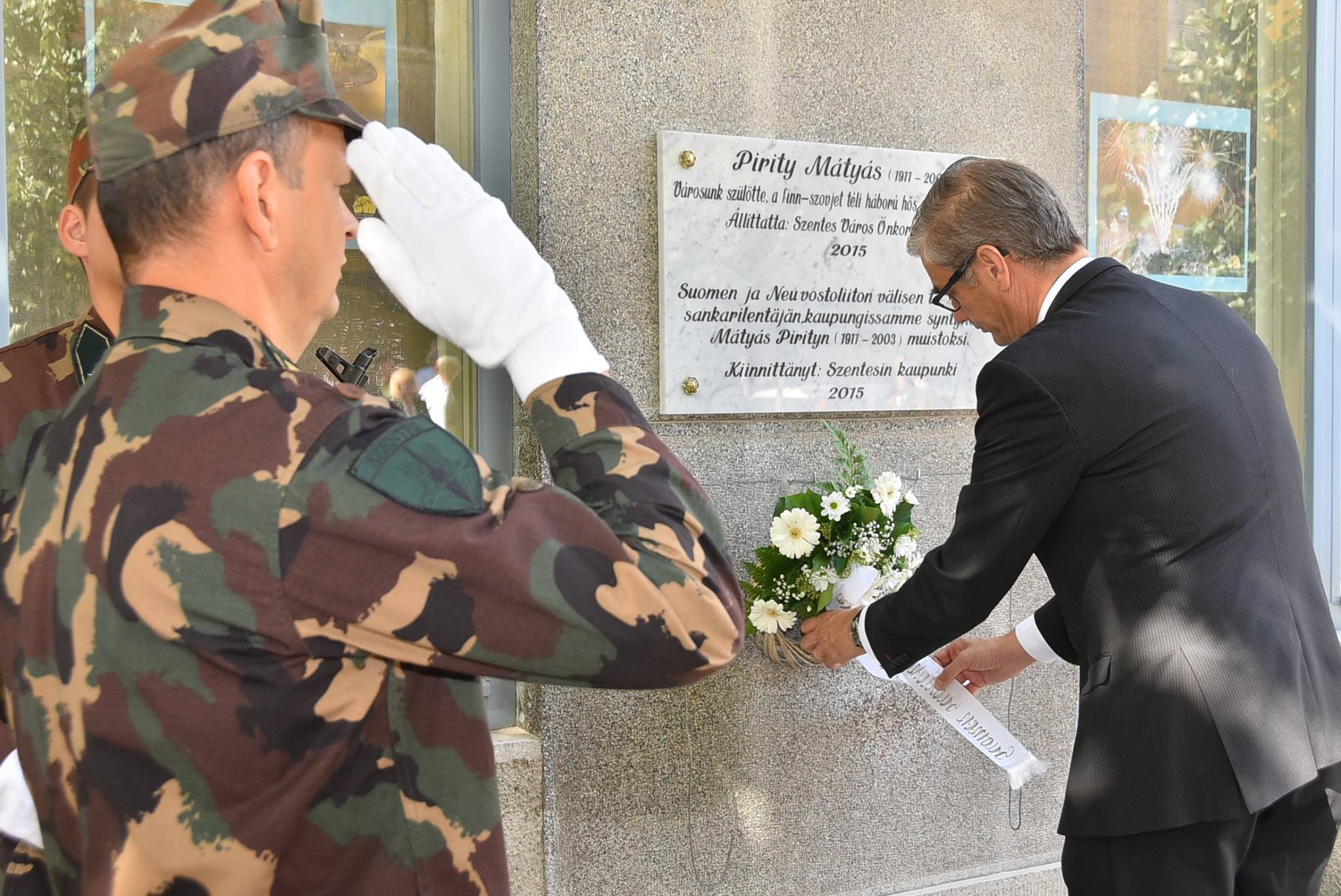 Szirbik Imre köszöntőjében célzott rá, hogy talán nem is oly soká, átköltözhet a tábla a felújított szálló falára. A polgármester szerint a tábla avatása egy újabb adalék Szentes, Európa és a világ történelméhez. Sokak életútja még ma is ismeretlen, de ezek a fehér foltok lassan napvilágra kerülnek a jövőbe mutatóan is. Pirity Mátyás nevét is kevesen ismerik, aki Békássy Vilmos tartalékos repülőtiszttel finn felhívásra jelentkezett önkéntesnek a szovjet-finn háborúba. Szirbik Imre emlékeztetett a lengyel emlékmű avatására. Mint fogalmazott, a katona az egyik oldalon hős, a másik oldalon bűnös, de a halott katona nem ellenség, kijár neki a tisztelet.