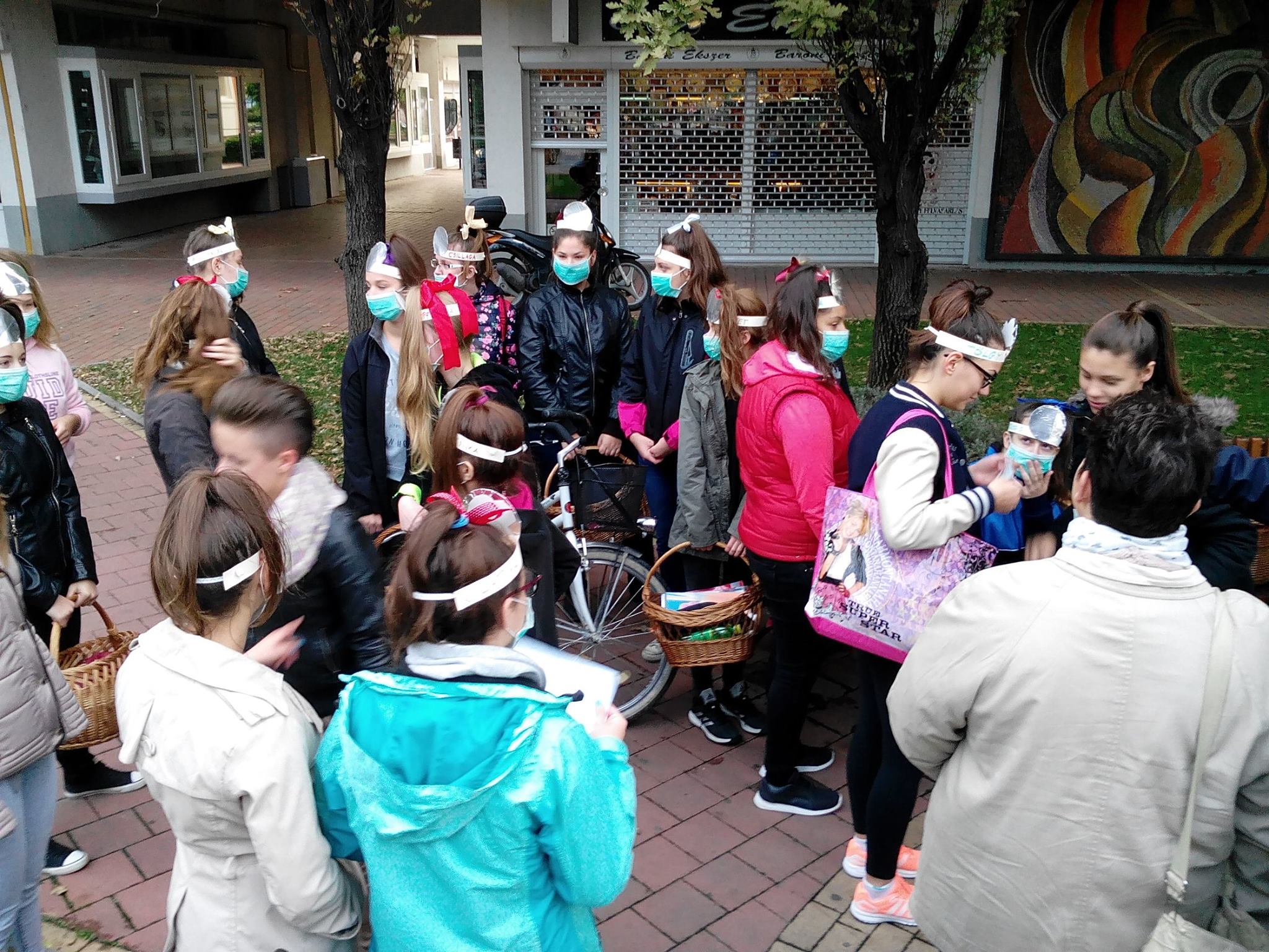 2015. szeptember 30-án megtörtént minden idők legdurvább szívatása a Közgéseknél, mert hát mikor dúlnak a hormonok és rügyeznek a homlokok a 12 c osztály azt találta ki, hogy a 9 c-s kisgólyáknak smink nélkül kell eltölteni ezt a napot. Persze ez nem volt elég, mert a képen látható egyen öltözékben és iskola táska helyett kosárral a kezükben kellett karácsonyi dalokat énekelni a Napernyő nélküli lány szobránál iskola kezdés előtt.