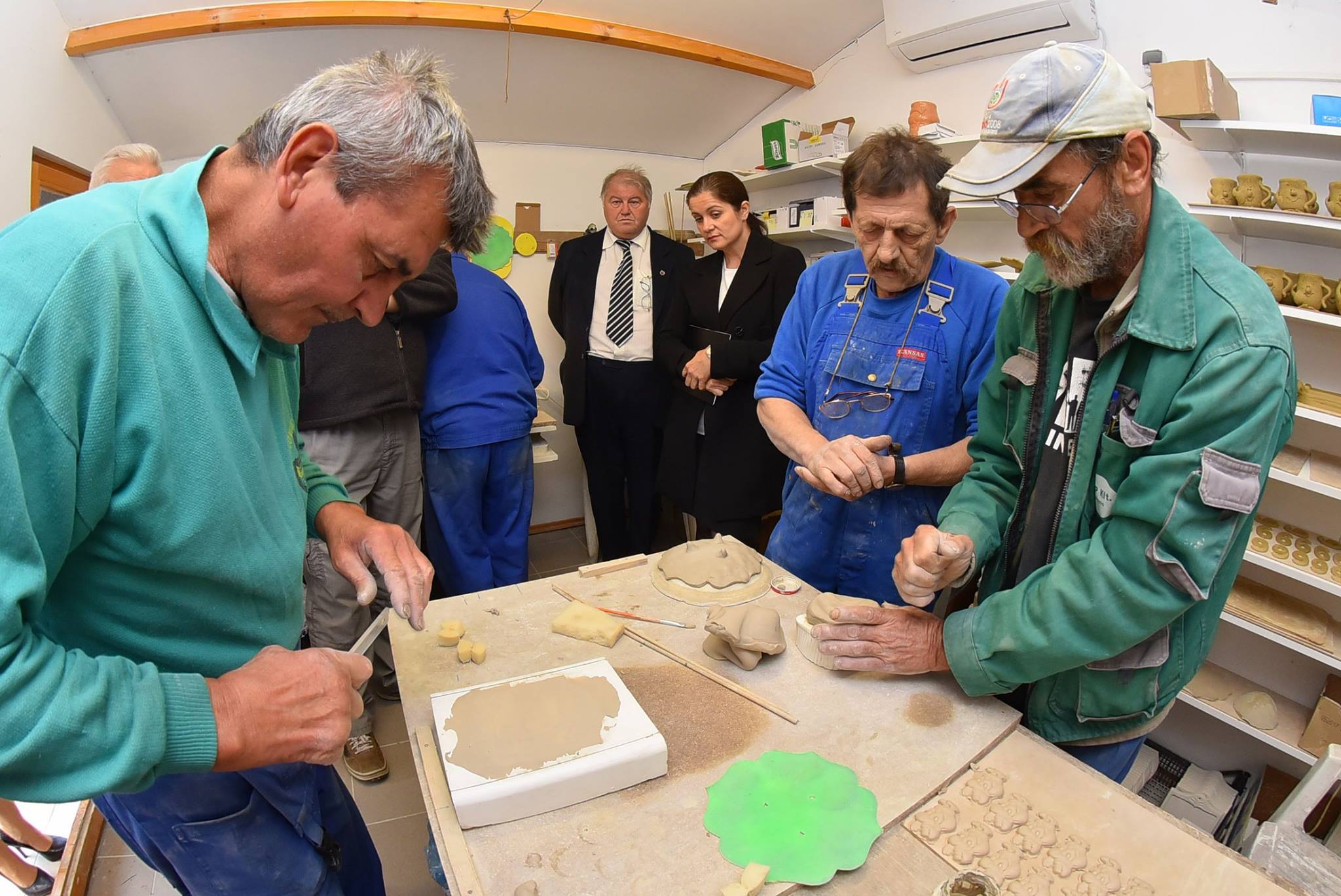 Berki András intézményvezető elmondta, hogy Szentesen, a Rákóczi Ferenc utcai intézmény lakóiból 12 főt vontak be a 18 millió forintos támogatással megvalósuló programba, amely kétféle foglalkoztatást jelent az ellátottak számára: egyrészt az épület környékén végzik a kertészeti, terepgondozási feladatokat, emellett az telephely területén található faházakban kézműves termékeket állítanak elő. Szőnyegszövéssel és kerámia tárgyak formázásával foglalkoznak. A program külön érdekessége, hogy a kerámiából házszámokat készítenek. A terv az, hogy Szentesen megvalósulhasson a házszámok egységesítése, a hajléktalanok kerámia számtábláinak felhasználásával.