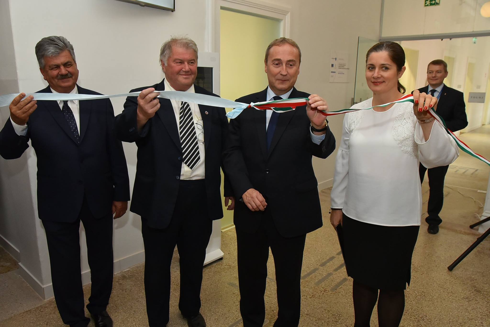 Az ünnepélyes átadáson az államtitkár úr mellett dr. Juhász Tünde megyei kormánymegbízott, Farkas Sándor, a térség országgyűlési képviselője és Szirbik Imre, Szentes polgármestere kötötte össze a nemzeti és a város világoskék színű szalagjait, ezzel szimbolizálva, hogy az új iroda összeköt minket, mint hogy szétválasztana.