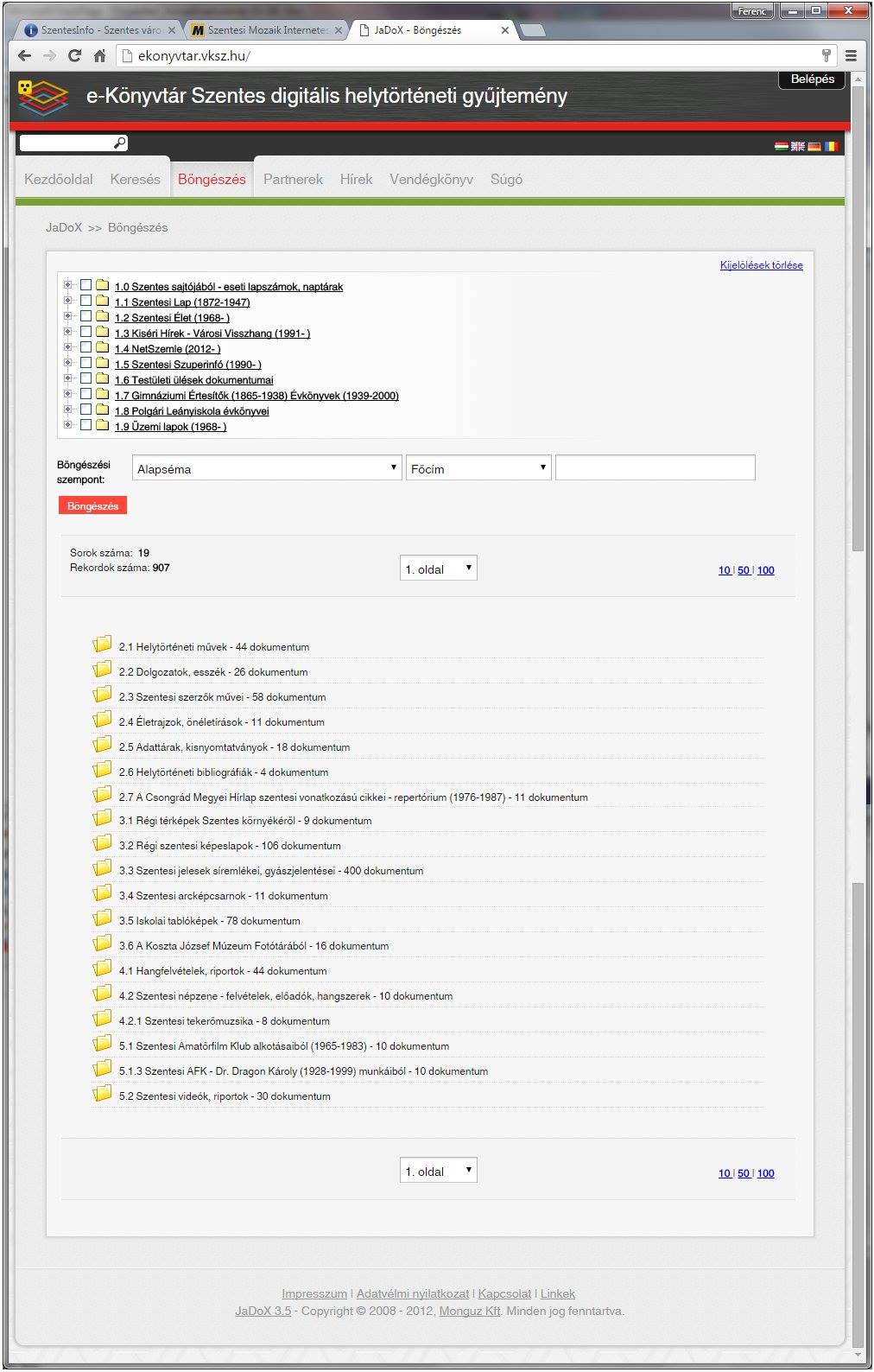 A tartalom kibővül az e-Könyvtár Szentes digitális helytörténeti gyűjtemény ismertetésével, amelyhez egy új menüpont is vezet.