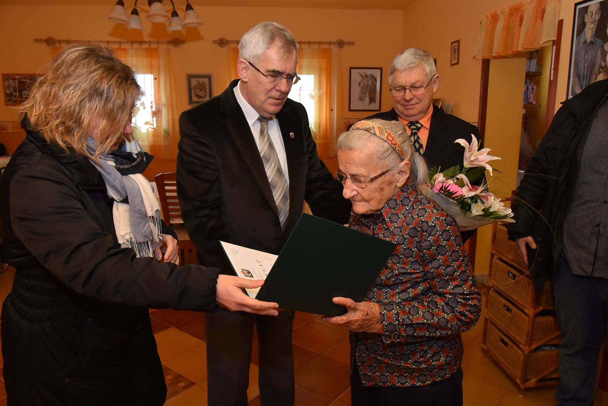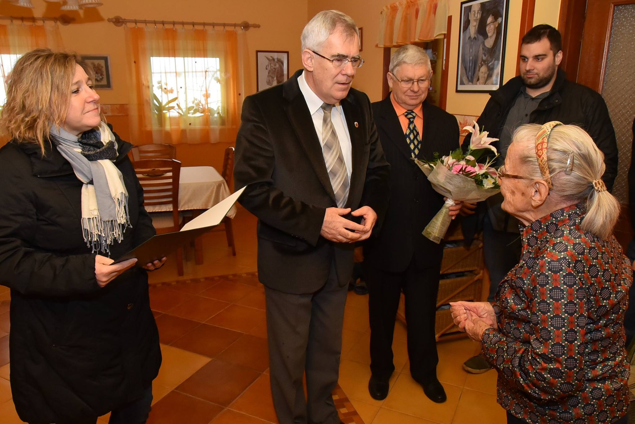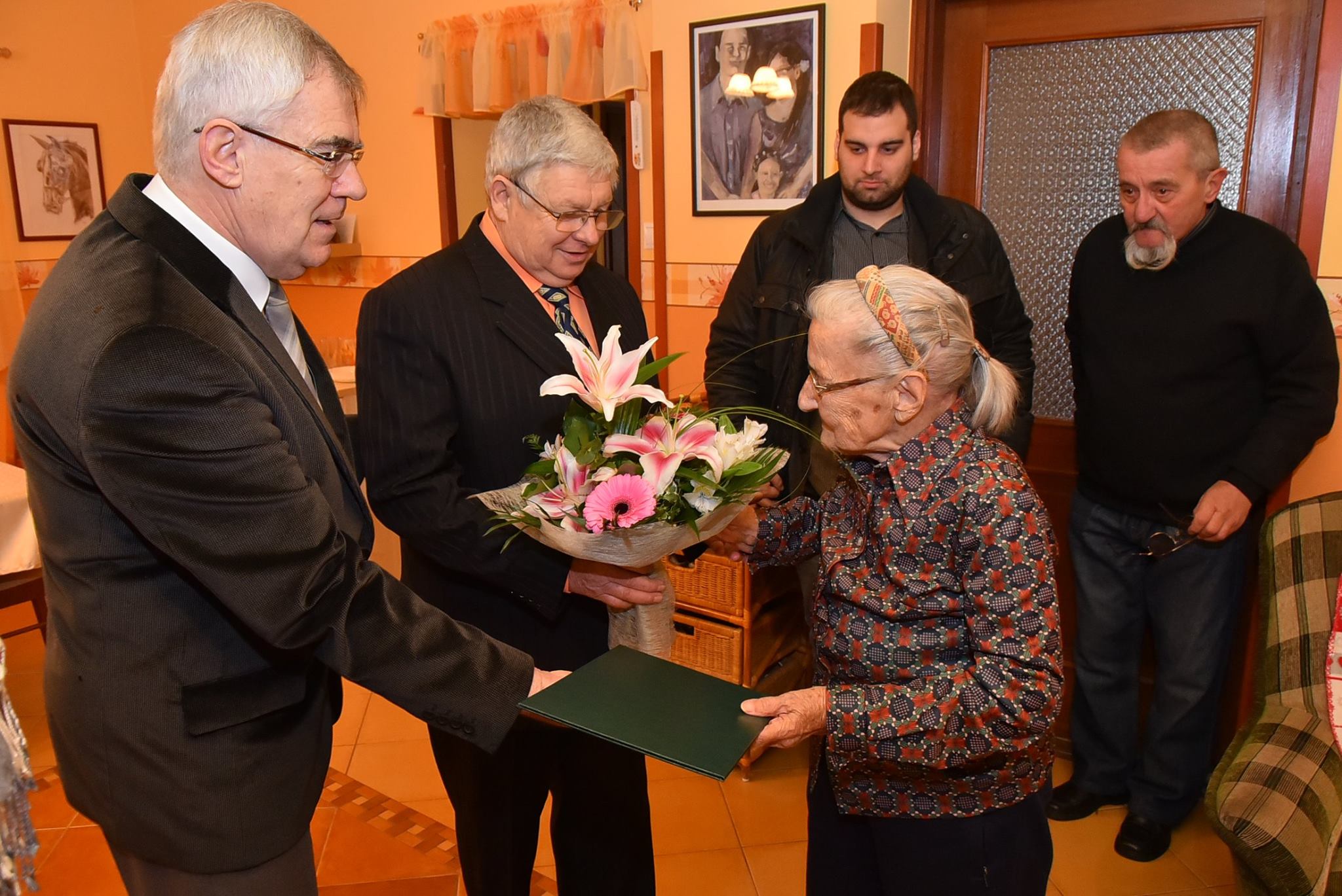 A város nevében Dr. Demeter Attila alpolgármester Hevesi-Tulipán Edit és Sipos Antal önkormányzati képviselők köszöntötték, majd adták át Orbán Viktor miniszterelnök köszöntő emléklapját.