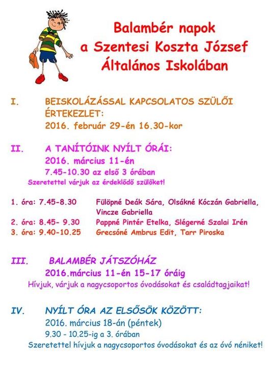 2016. március 11-én 7.45-10.30 az első 3 órában Szeretettel várjuk az érdeklődő szülőket!