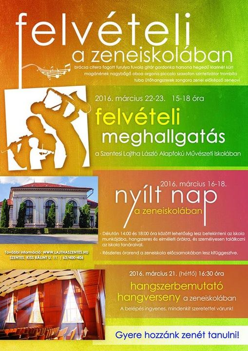 Az iskola életébe való betekintés és ismerkedés után FELVÉTELI MEGHALLGATÁST tartanak az iskolában 2016. március 22-23-án, 15-18 óra között hangszeres és magánének tanszakokra.