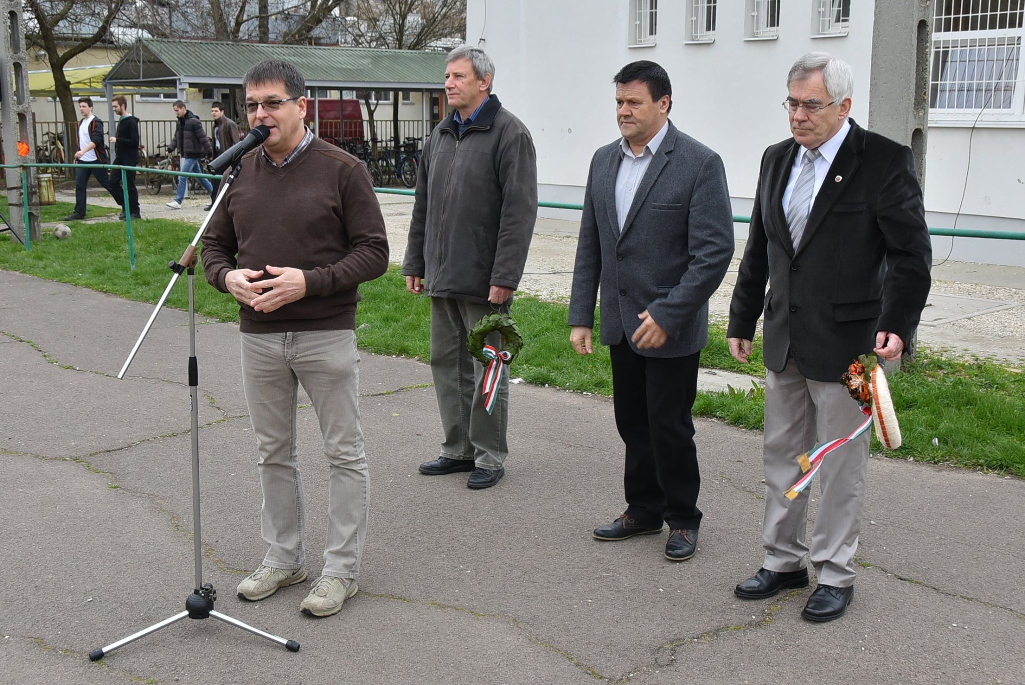 Ezután a meghívott vendégekkel Dr. Demeter Attila alpolgármesterrel és Antal Balázs Tibor önkormányzati képviselővel együtt elhelyezték az emlékezés koszorúit a Pollák emléktáblánál.