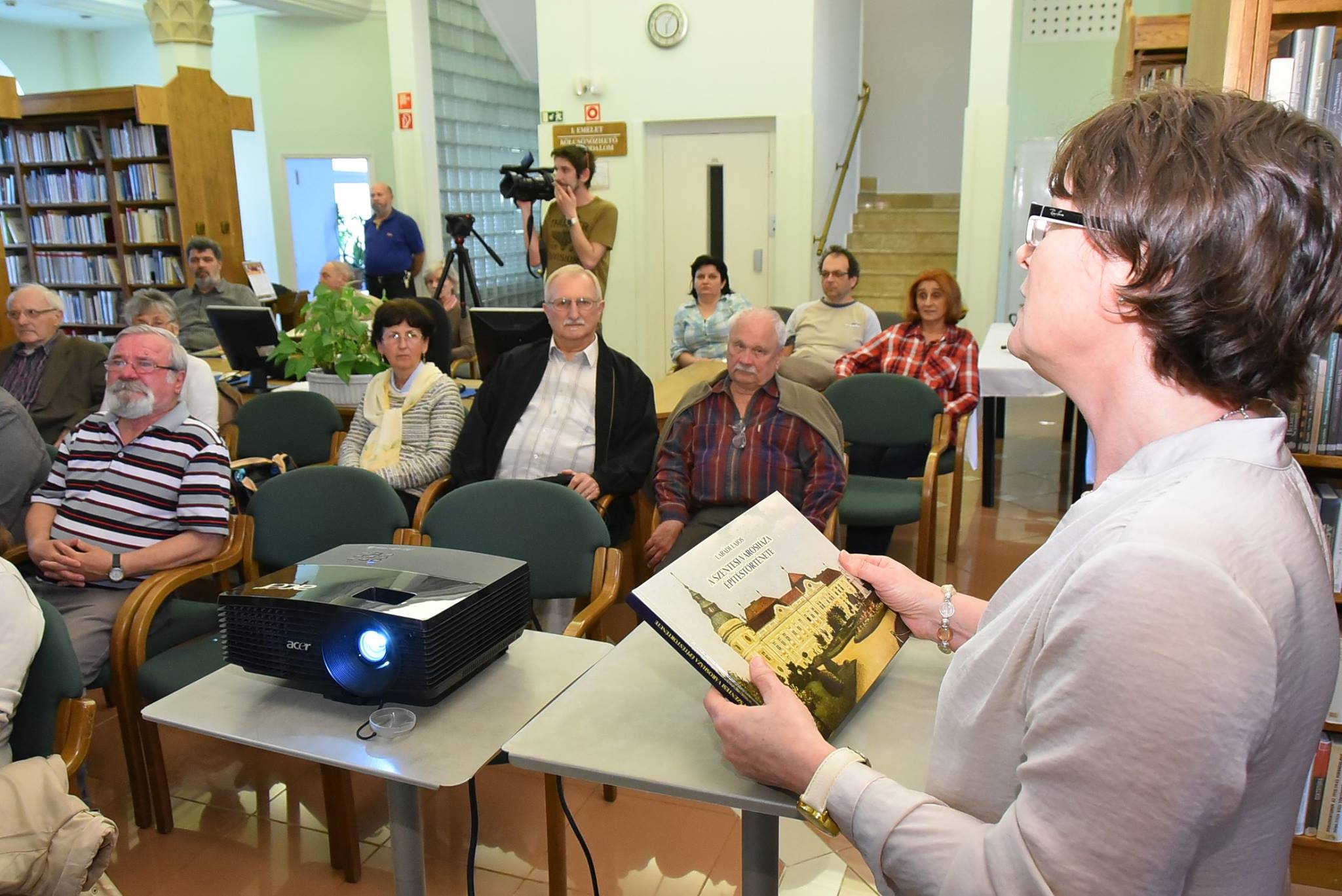 A szentesi városházák regényes történetét Vágvölgyi Zoltán helytörténész-könyvtáros kérdései nyomán ismertette a szerző, Labádi Lajos főlevéltáros. A beszélgetést vetített képekkel Tímár Ferenc illusztrálta.
