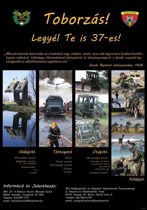 2016. április 15-én (pénteken) 18:00 órától 22:00 óráig a MH. 37. II. Rákóczi Ferenc Műszaki Ezred is képviselteti magát a Szakmák Éjszakája elnevezésű rendezvényen, melynek helyszíne a Zsoldos Ferenc Szakközépiskola B. épülete (volt Petőfi iskola).