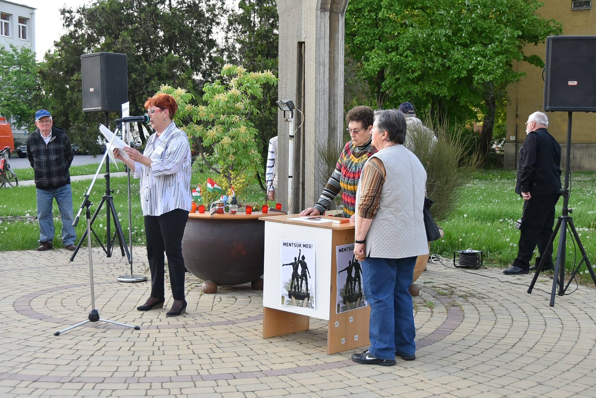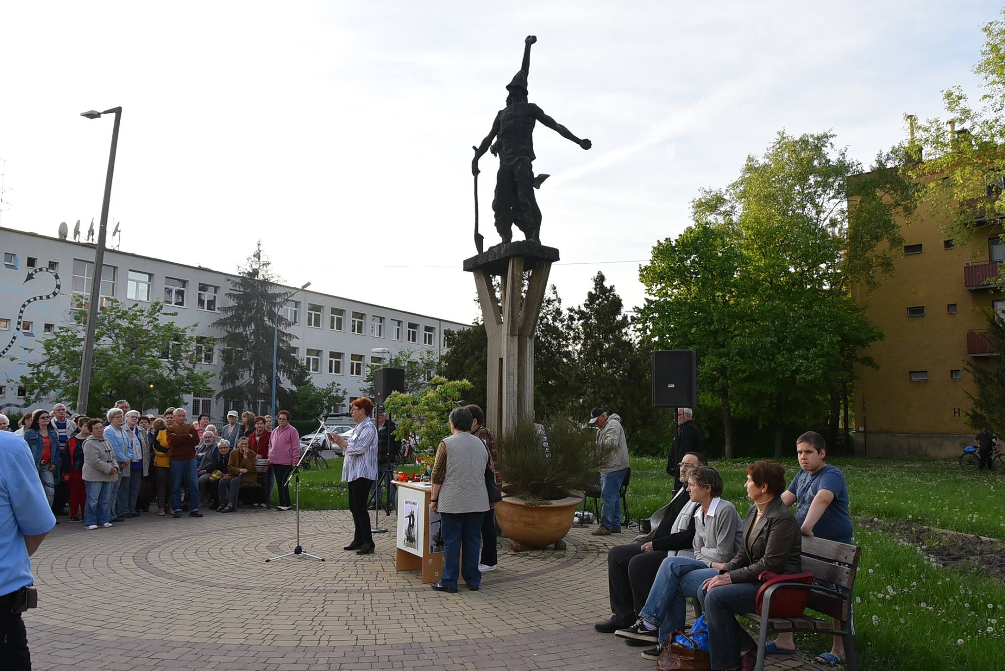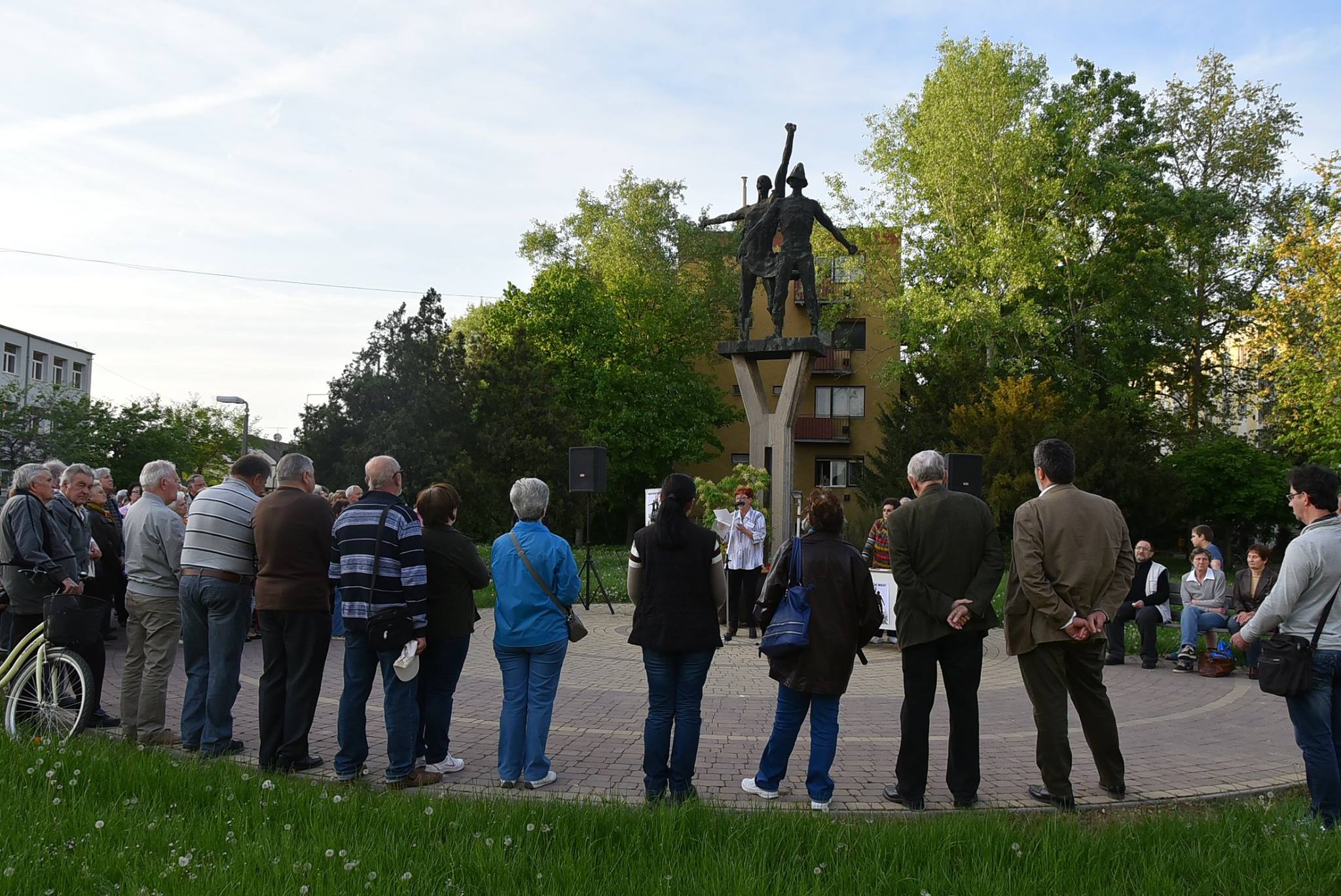 A körzet képviselőnője Krausz Jánosné a szobor megmentése és megmaradása érdekében hívta a szimpatizánsait a térre, hogy tiltakozzanak a tervezett intézkedés ellen.