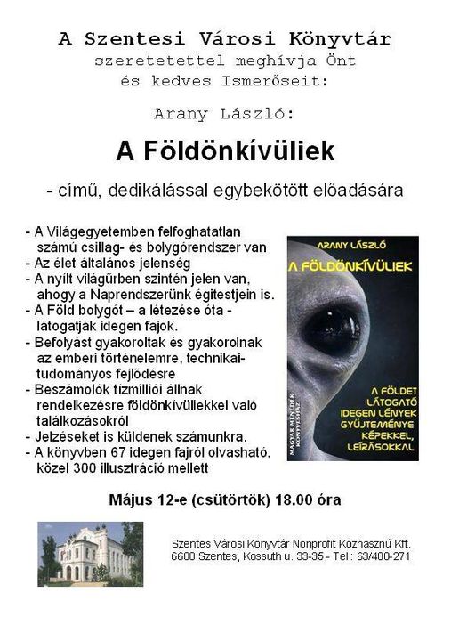 Arany László: A Földönkívüliek című, dedikálással egybekötött előadására