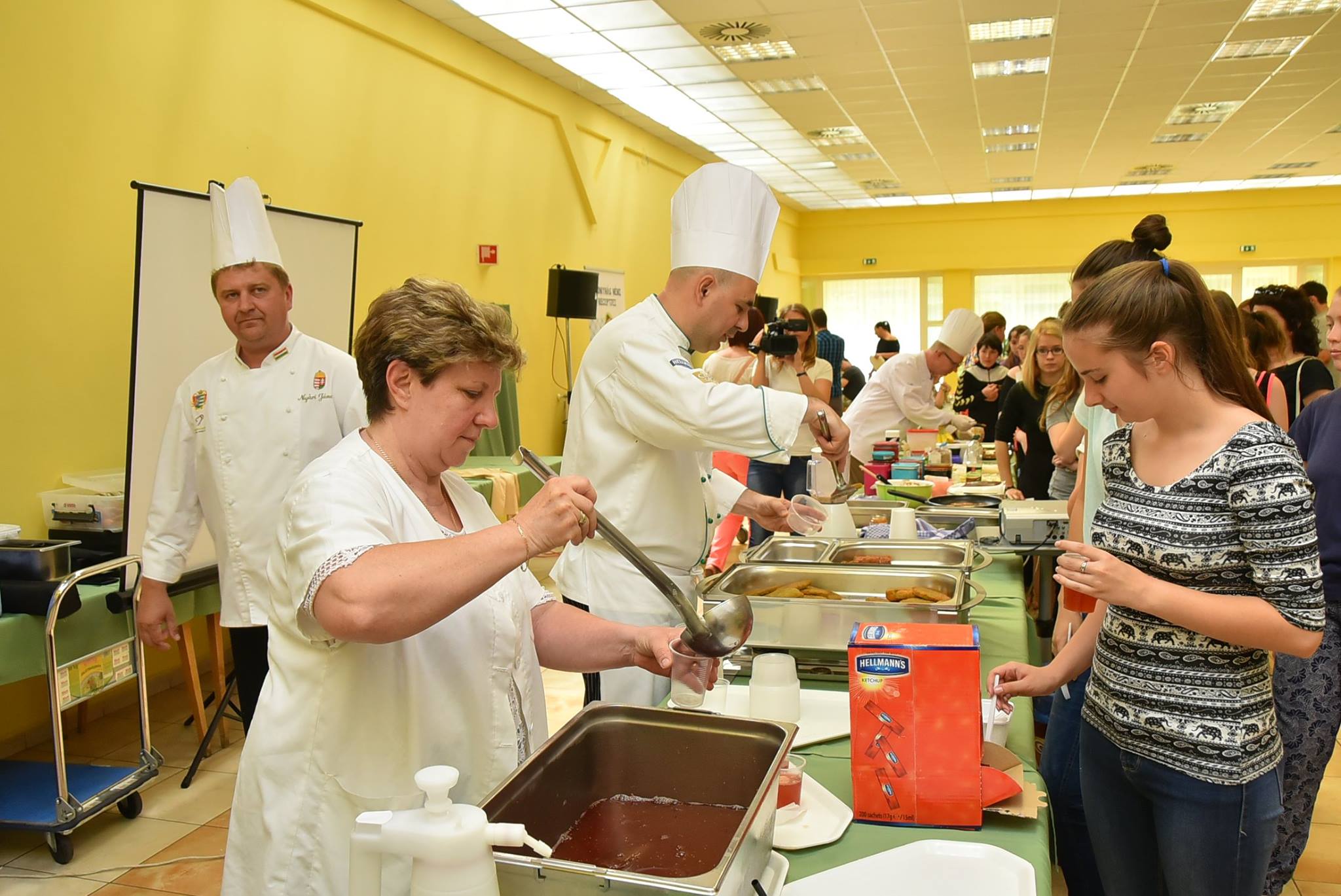 Finom volt!!!!!! – így konstatálták a gyerekek azt a kóstolót, melyet Nyári János a Központi Gyermekélelmezési Konyha vezetője szervezett. A vidám, ízekkel teli bemutatón Tanács Attila fejlesztőséf, Szikora Péter mesterszakács és Ökrösné Kis Éva ismertette meg a gyermekeket az új ízekkel, alapanyagokkal és ételekkel.