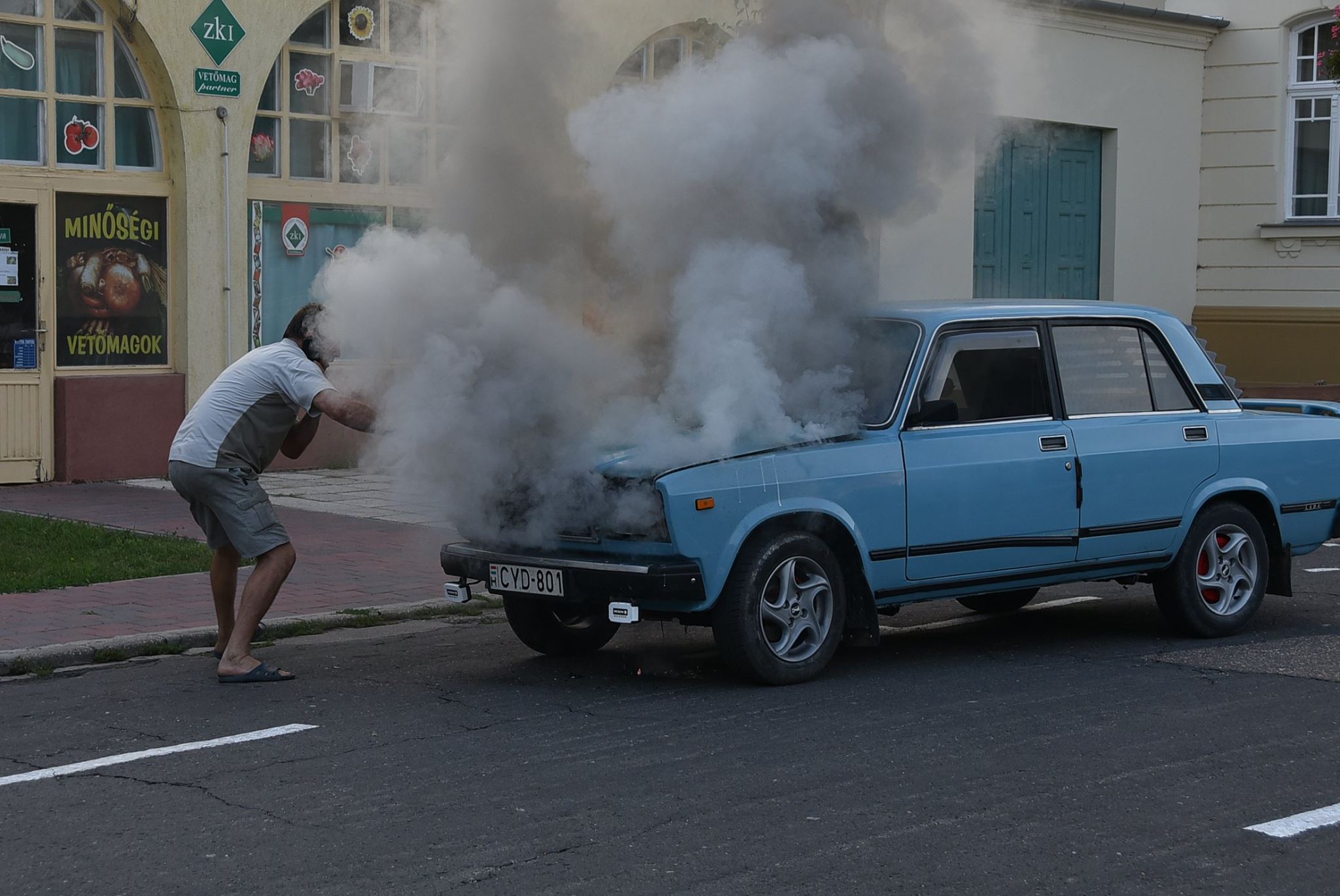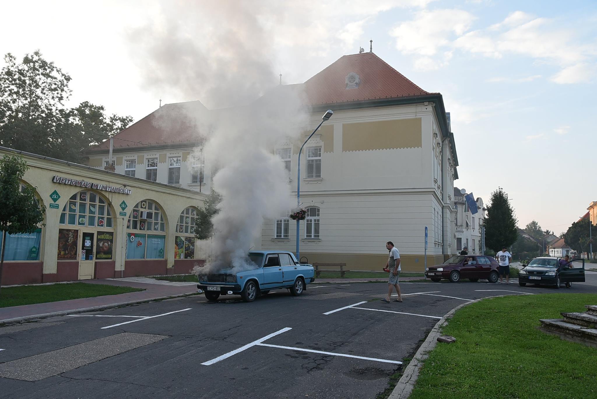 Megtudtuk, hogy két évnyi kemény munka árán sikerült rendbe hozni a Ladát, amely jól is működött. Most pár perc alatt semmisült meg mindez. Két fiatalember egy bordó autóból kiugorva előkapták a poroltó készüléküket és azon nyomban odaadták a bajba került sofőrnek, de sajnos így sem lehetett megmenteni a gépet.