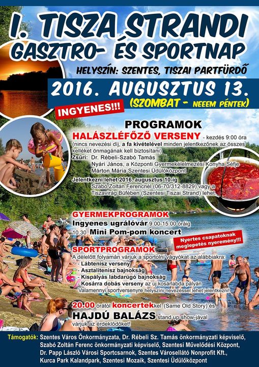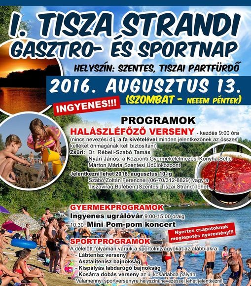 2016. augusztus 13-án rendezik meg hagyományteremtő céllal az első Tisza Strandi Gasztro- és Sportnapot a szentesi tiszai partfürdőn.