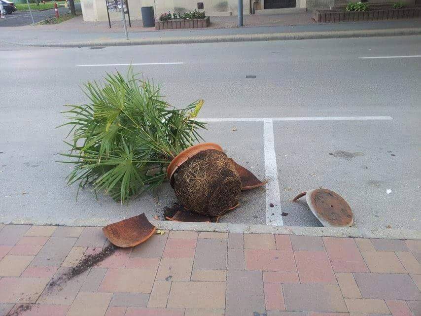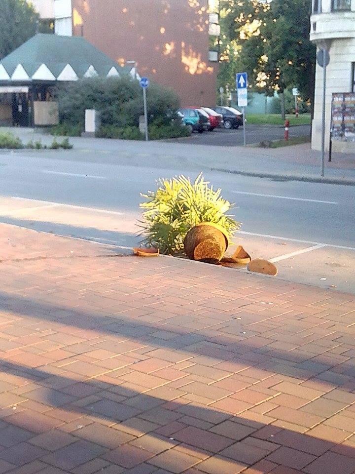 2016. augusztus 25-én a hajnali órában gondolt, vagy gondoltatták a Kossuth utcán található kaspóval, hogy ideje a megunt hétköznapokat egy kicsit feldobni. Olyan jól sikerült, hogy bele is tört (ugyan nem a bicskája, hanem) a cserepe. Vélemény? Írja meg a Szentesi Mozaik facebook oldalán!