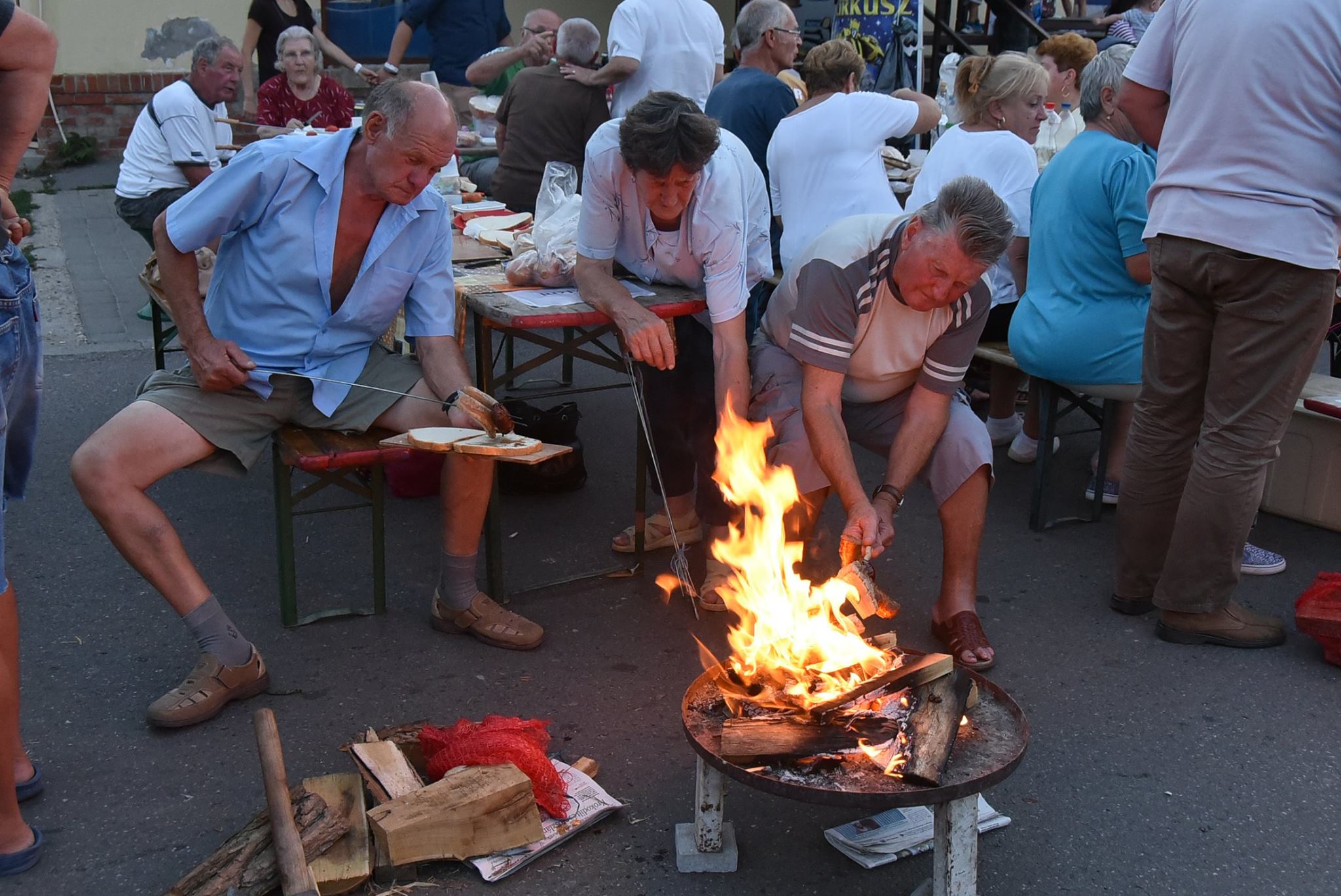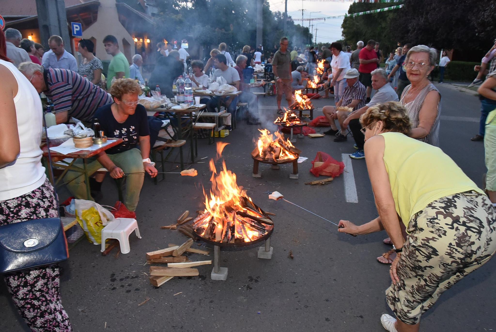 Este hét órakor fellobbannak az első tüzek, amikor is egy nagy szalonnasütéssel alapozzák meg a másnapi lecsófőzést.