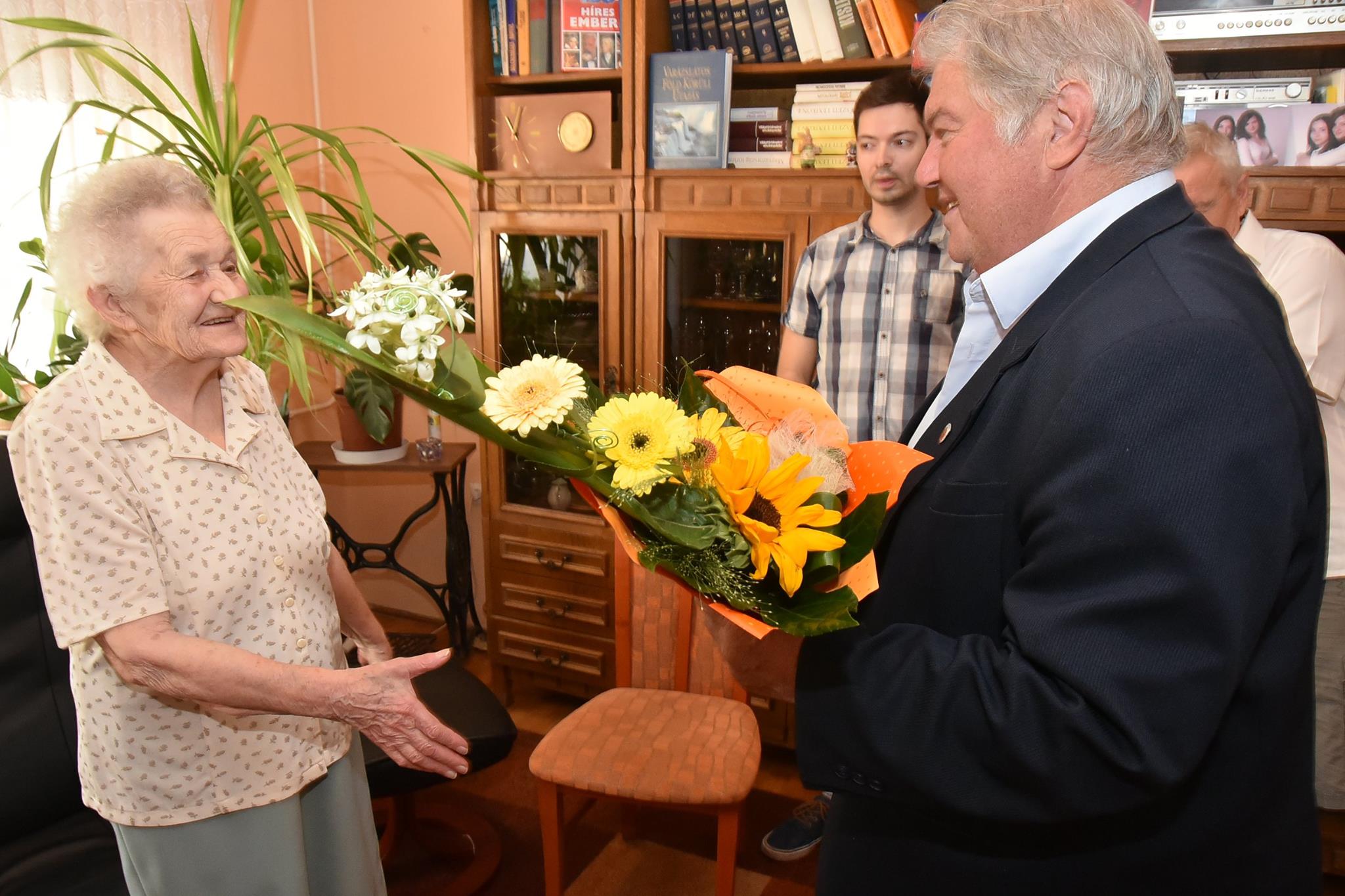 Szabó Sándorné Eszter néni 2016. szeptember 13-án ünnepelte 90 éves születésnapját leánya Veres Péter utcai otthonában, ahol Szirbik Imre polgármester és a körzet képviselője Chomiak Waldemar önkormányzati képviselő tolmácsolta a város üdvözletét e jeles alkalomból.