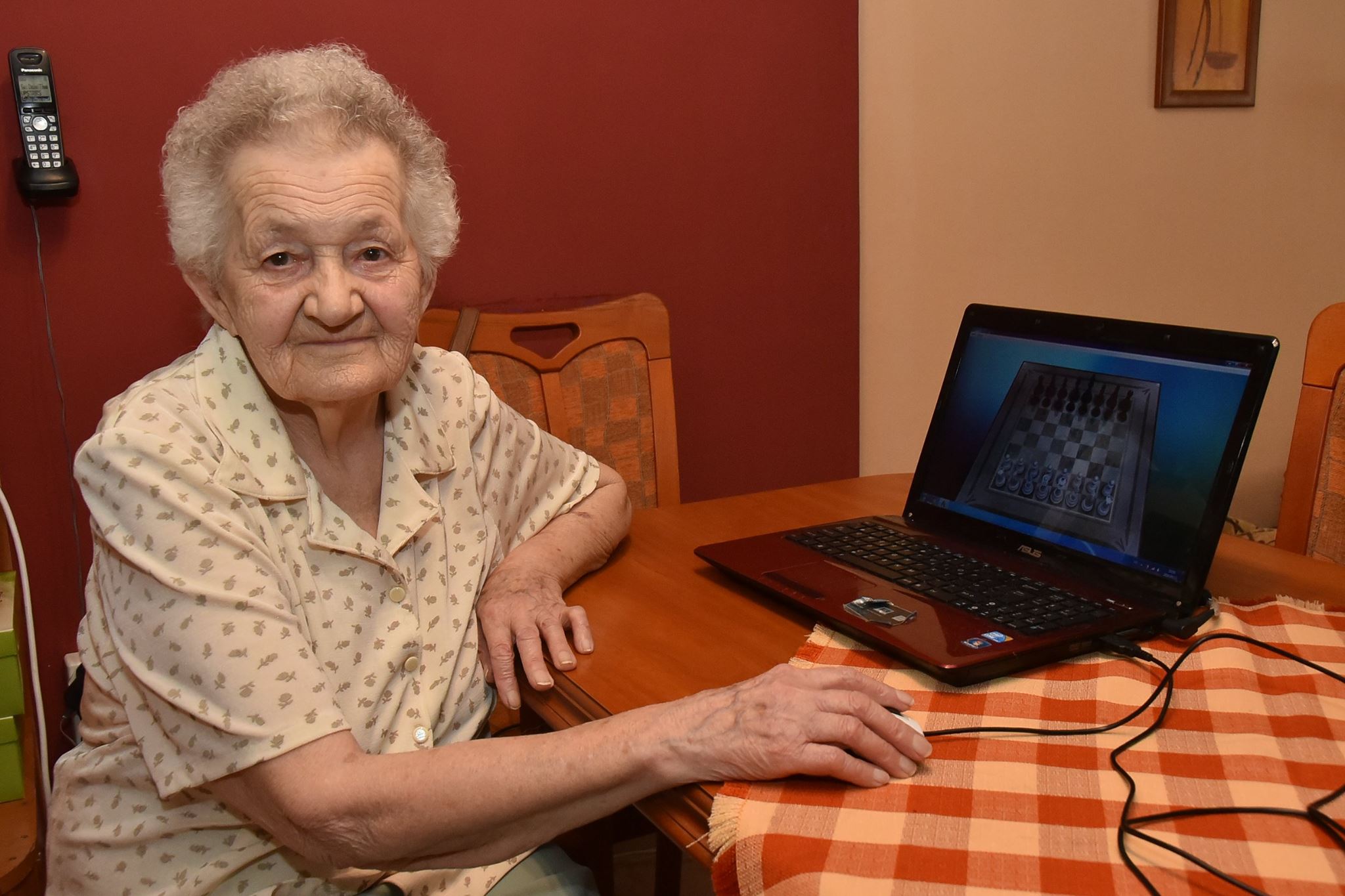 Eszterke néni 90 évesen sakkozik a számítógépen!