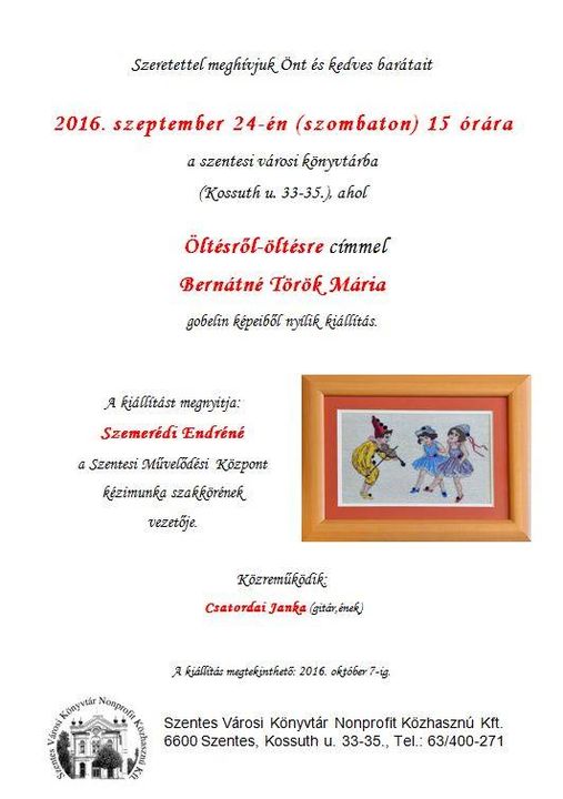 Kezdőlap Könyvtár Szombaton délután 3 órakor új kiállítás nyílik könyvtárunkban. Szeretettel várun…