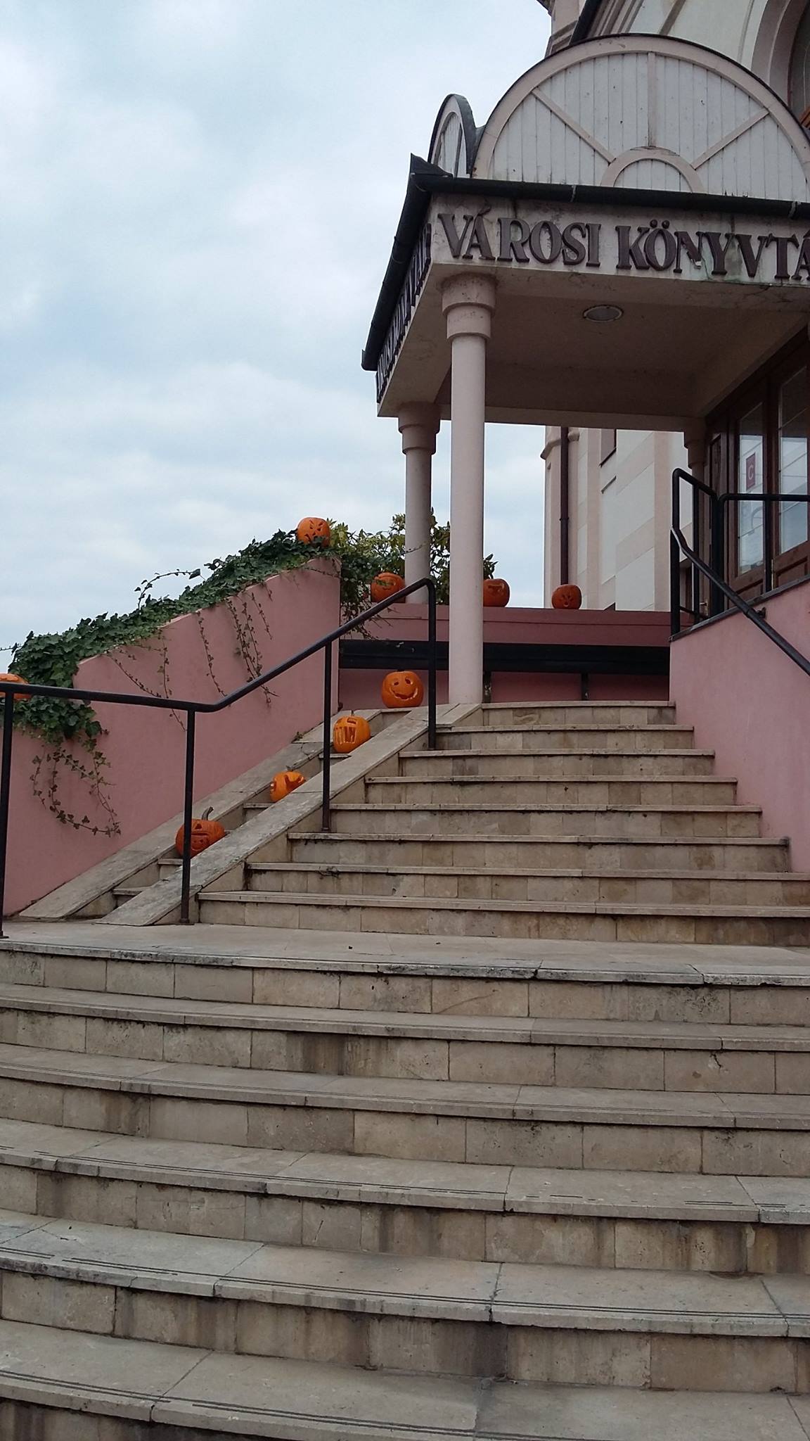 Délután is várjuk kedves Olvasóinkat, látogatóinkat. A bejáratot vízipólós gyerekek faragta tökök díszítik.