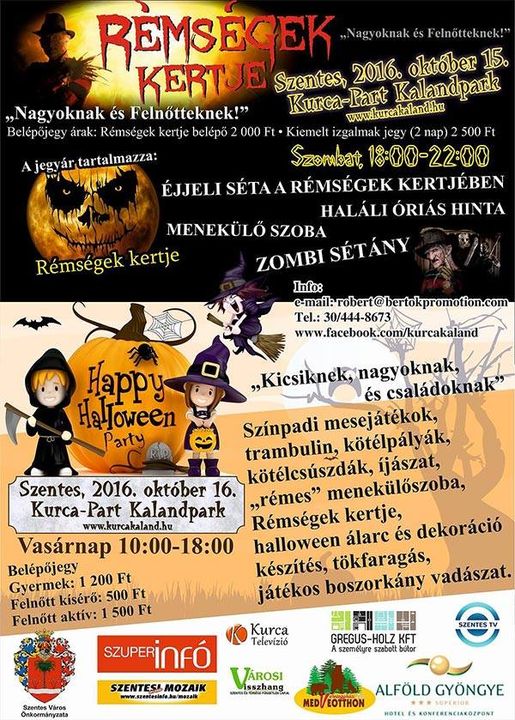 Vasárnap 10:00 órától a legkisebb gyermektől a legidősebb felnőttekig mindenkinek a Happy Halloween Party, a Kurca-part Kalandparkban!