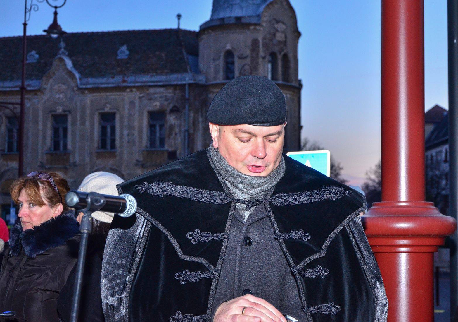 Fehér Csaba, a Református Nagytemplom lelkésze köszöntötte a Kossuth téren található városi adventi koszorúnál a megjelenteket, majd Advent üzenetéről, jelentőségéről beszélt.