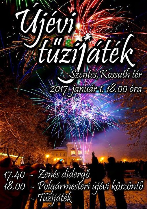 Köszöntsük együtt az új esztendőt 2017. január 1-jén 18.00 órakor Szentesen a Kossuth téren. Miután mindenki kipihente a szilveszteri bulit, újév első napján a koraesti órákban rendezik meg a 2017-es esztendő első tűzijátékát.