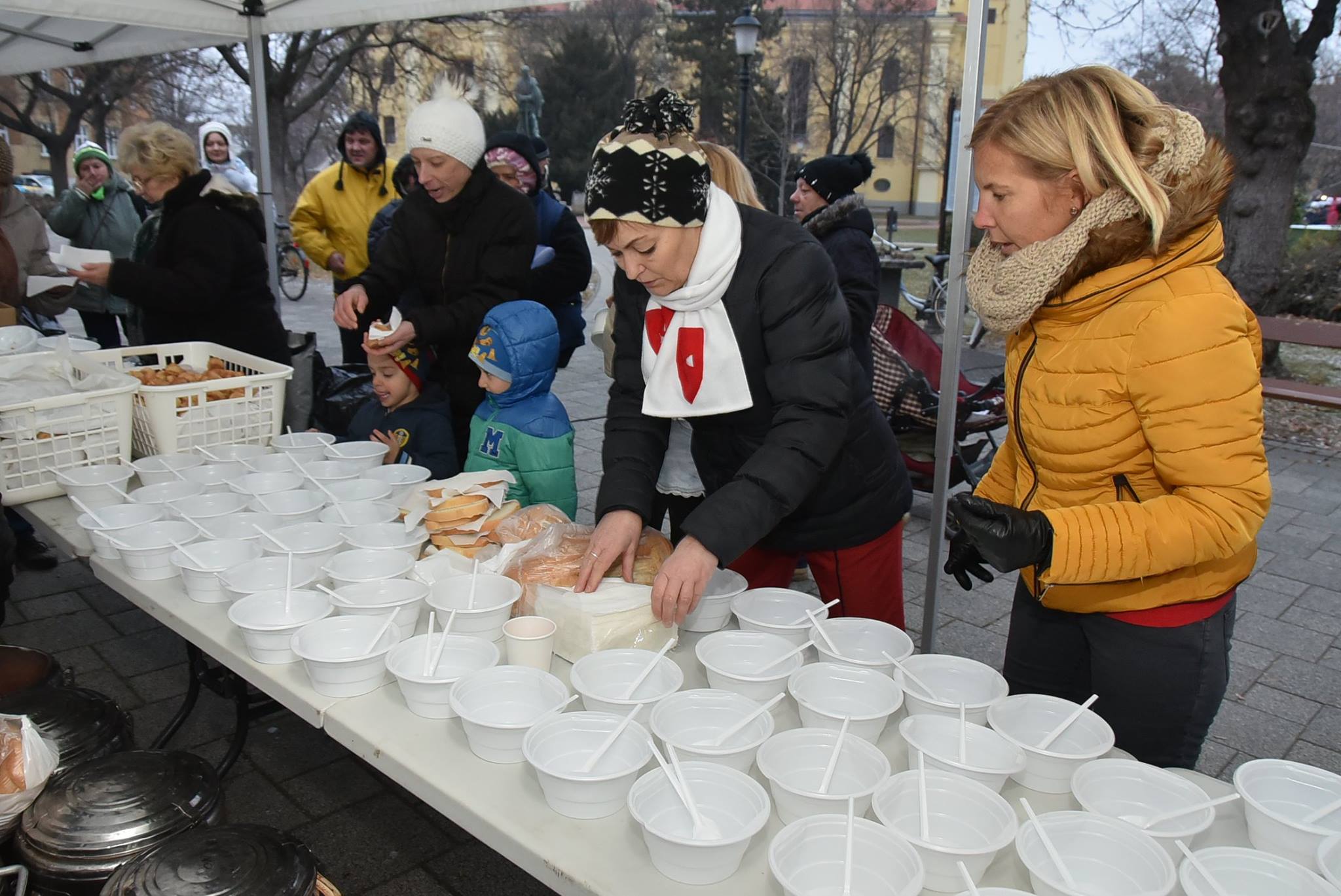 Összesen 300 adag készült, de nem fogyott el mind, így az akció végén a hajléktalan szálló azon lakói is részesültek a meleg babgulyásból, akik nem jöttek fel a városba.