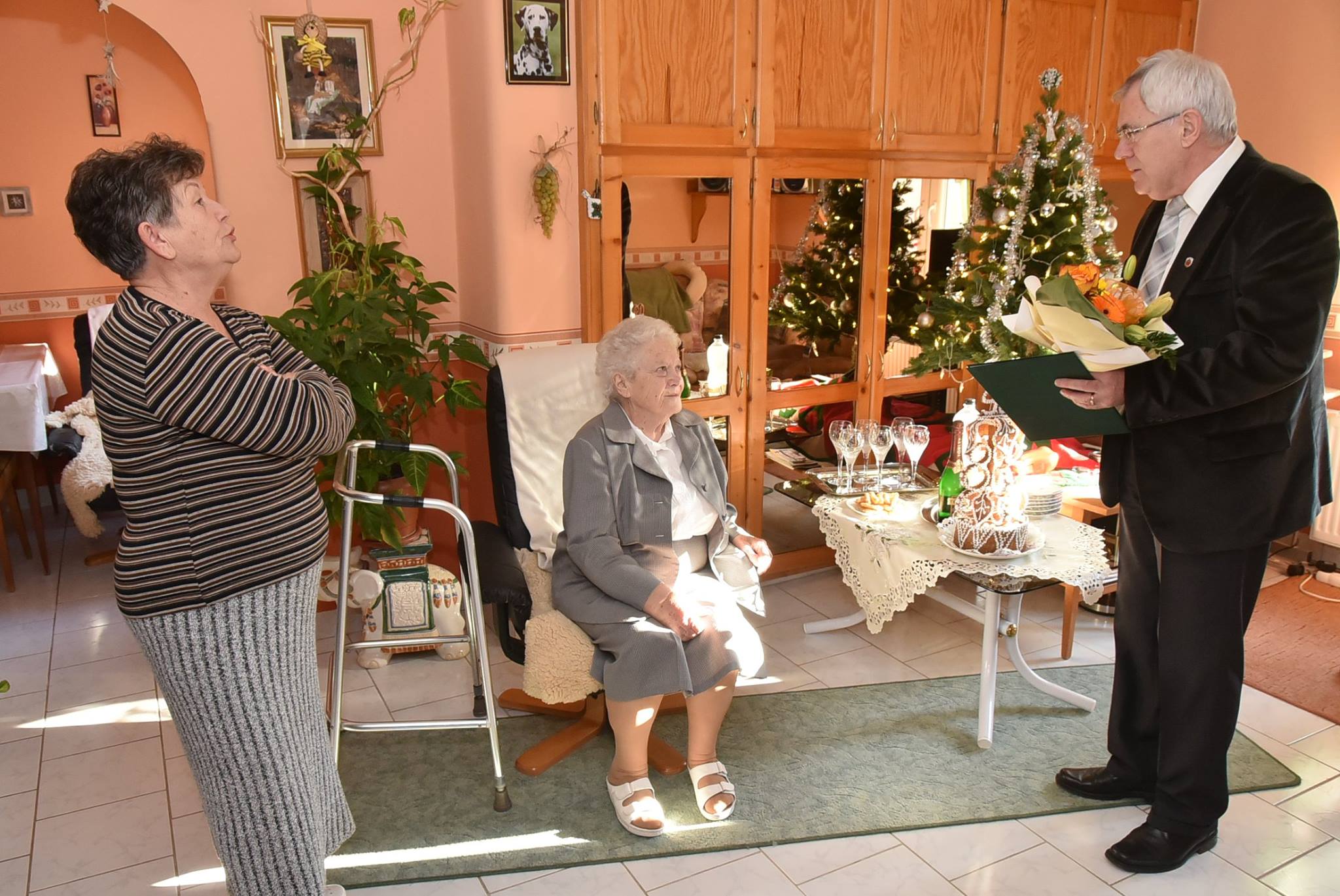 Dr. Demeter Attila alpolgármester köszöntötte 90. születésnapján a kiséri városrészben élő Virág Jánosné, Marika nénit. A város vezetője egy virágcsokorral és miniszterelnöki emléklappal érkezett a családhoz.