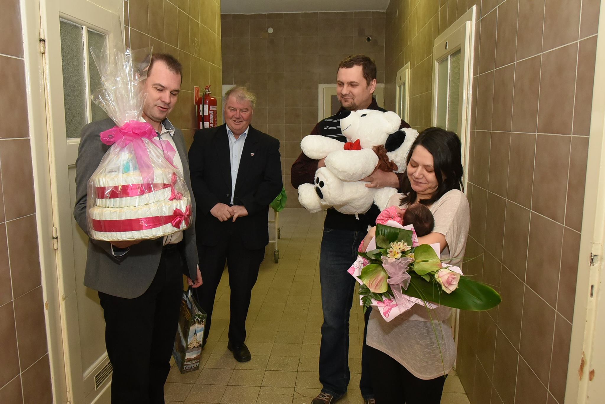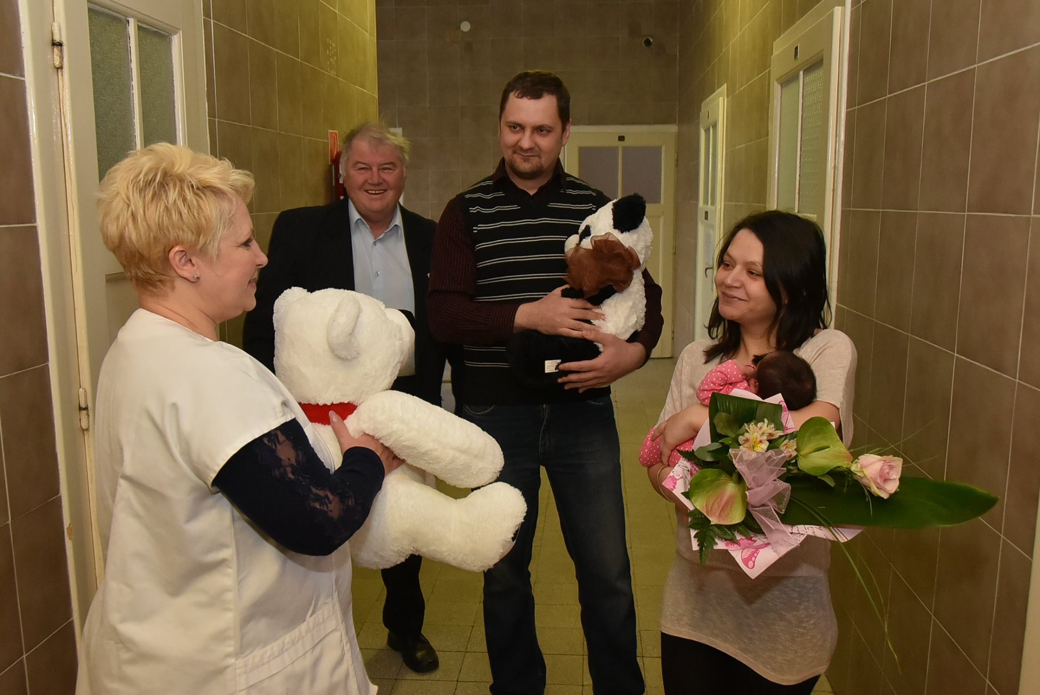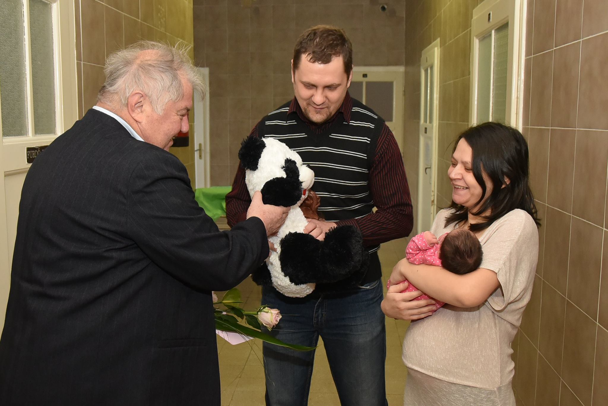 Szirbik Imre polgármester és Dr. Szilágyiné Kádár Irén a kórház ápolási igazgatója egy-egy macival érkezett, míg Hodálik Pál alpolgármester egy „baba tortával”, amely jól fog jönni a következő hetekben, valamint Szarvas az ősztől 50.000 forintos babakötvénnyel is támogatja a város új lakóját.