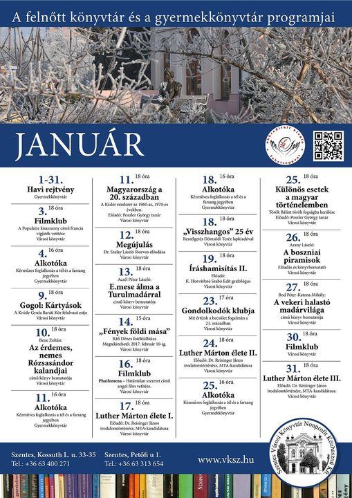 Filmklubbal, könyvbemutatókkal és ismeretterjesztő előadásokkal indul a 2017-es esztendő a Városi Könyvtárban!
