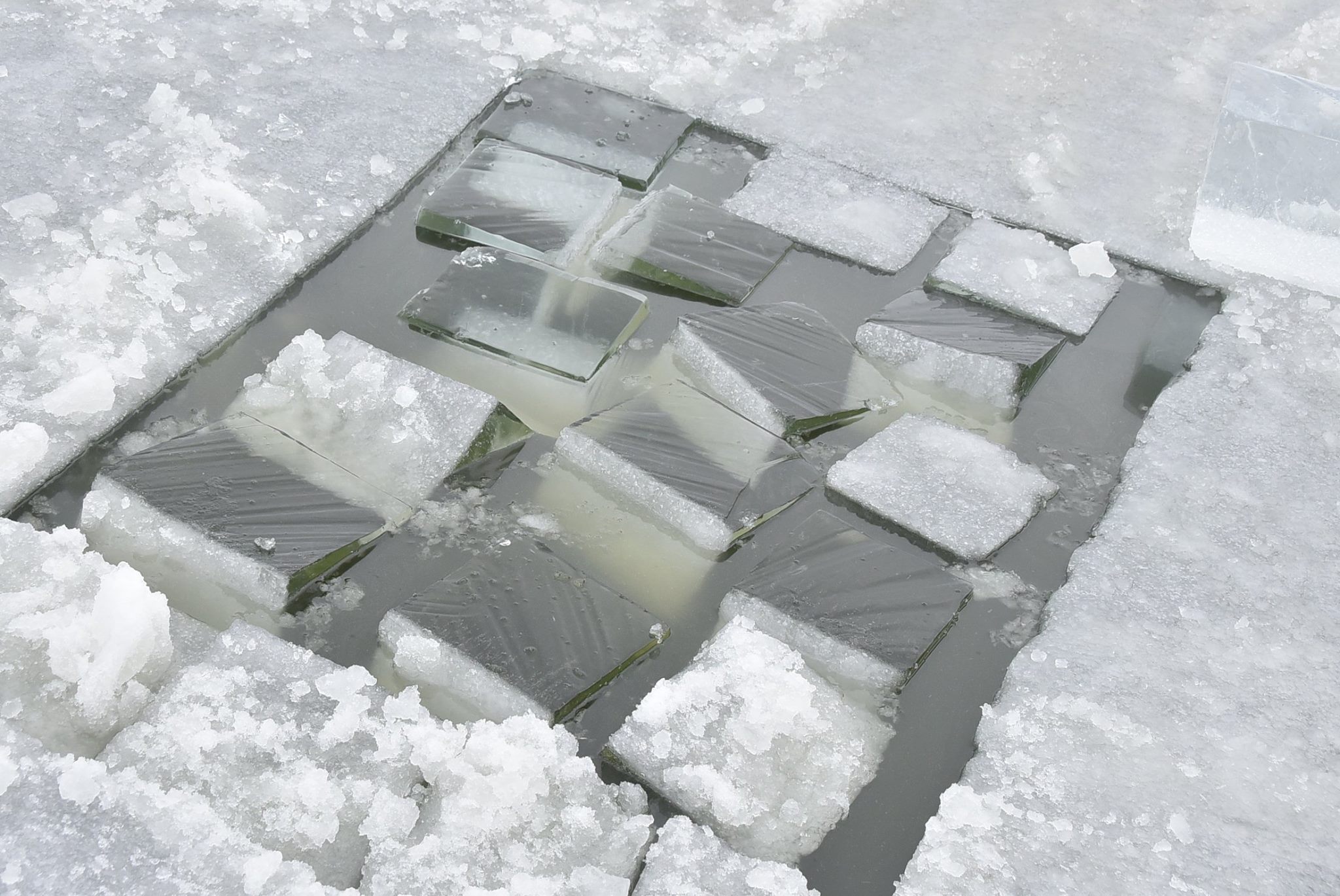 Búvárok gyakorlatoztak Csongrádnál a Holt-Tiszán, ahol léket vágtak és egy ilyen tömb látható a képen. Megmértük 27 cm vastag! Ennek ellenére nem szabad a jégre menni, mert pl. a Holt-Tiszán több helyen vágnak léket, hogy szabad levegőhöz jusson a víz, és a halállomány ne pusztuljon ki.