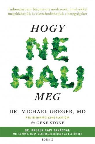 „Ételek, amelyek évekkel hosszabbíthatják meg az életedet – ismerd meg Dr. Greger napi tanácsait!A hihetetlen népszerűségnek örvendő NutritionFacts.org weboldalt működtető orvos Hogy ne halj meg című könyvében földrengető tudományos bizonyítékokat ismerhetünk meg az egyetlen étrendről, amellyel számos halálos betegség kiváltó okai kivédhetők és visszafordíthatók.A korai elhalálozás tizenöt vezető okaként ismert betegségek – például a szívbetegség, a rák, a cukorbetegség, a Parkinson-kór, a magas vérnyomás és egyebek – évente több millió ember életét követelik. Dr. Greger tudományos bizonyítékokkal alátámasztott tanácsait követve megtudhatod, mely ételek fogyasztása javasolt, és milyen életmódbeli változtatásokkal segítheted elő a betegségek megelőzését, illetve az ellenük folytatott harcot, hogy tovább élhess.A Hogy ne halj meg című könyv amellett, hogy megmutatja, mit egyél, hogy legyőzd a leggyakoribb halálokokat, bemutatja Dr. Greger napi jó tanácsait is – azoknak az élelmiszereknek és tevékenységeknek a listáját, amelyeket tanácsos beépítened a napirendedbe. A gyakorlati, kivitelezhető tanácsokkal és a táplálkozástudomány meglepő, „húsba vágó” adataival pontosan ez az az orvosi javaslat, amelyre egy hosszú, egészségesebb élethez szükséged lehet.Fedezd fel azokat a módszereket, amelyekkel tudományosan bizonyítottan megelőzheted és visszafordíthatod a betegséget!Dr. Michael Greger orvos, író és nemzetközileg elismert táplálkozástudományi, élelmiszer-biztonsági és közegészségügyi előadó. Ő működteti a népszerű NutritionFacts.org weboldalt, ezt a nonprofit, tudományos közszolgáltató felületet, melyen mindennap ingyenes videókat és cikkeket tesz közzé a legfrissebb táplálkozástani kutatásokról. Dr. Greger az Egyesült Államok Humane Society nevű szervezete közegészségügyi és állattartó mezőgazdasági osztályának a vezetője.Gene Stone számos növényi táplálkozással foglalkozó könyv szerzője, köztük a New York Times sikerlistáját vezető Forks over Knives című munkával. Ő a társszerzője továbbá a szintén sikerlistás The Engine 2 Diet és a Living the Farm Sanctuary Life című könyvnek.”